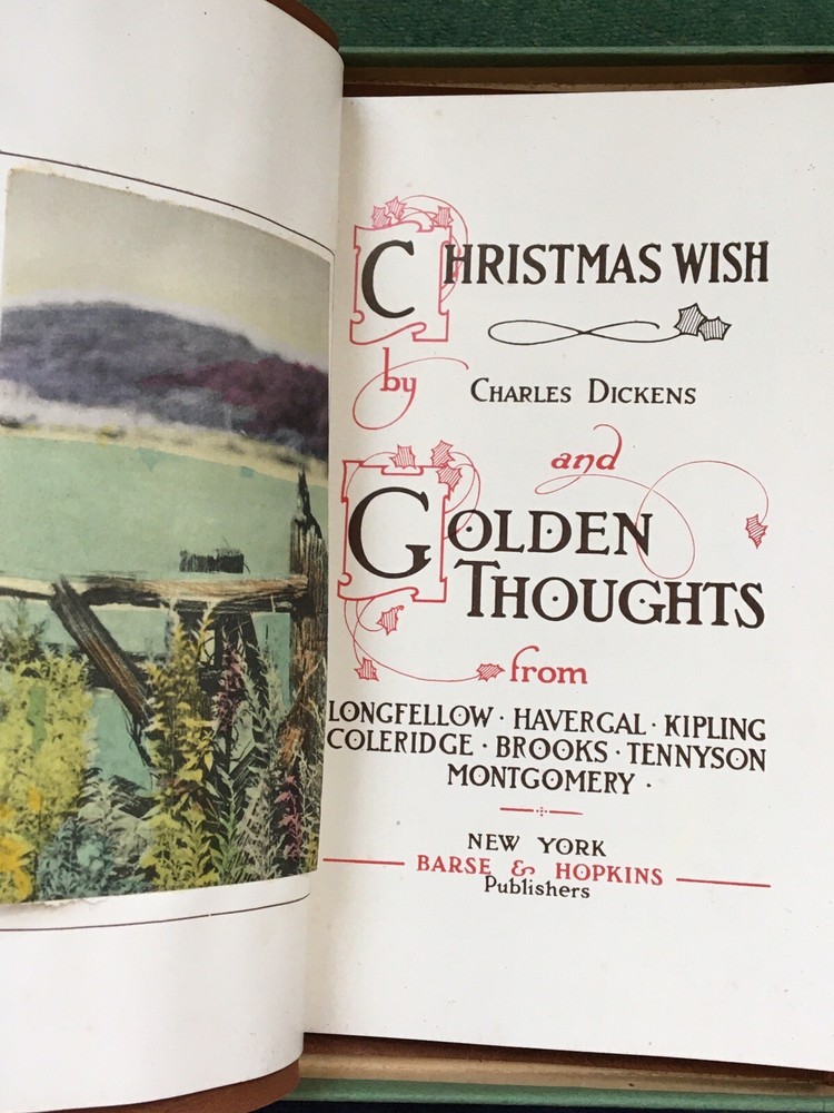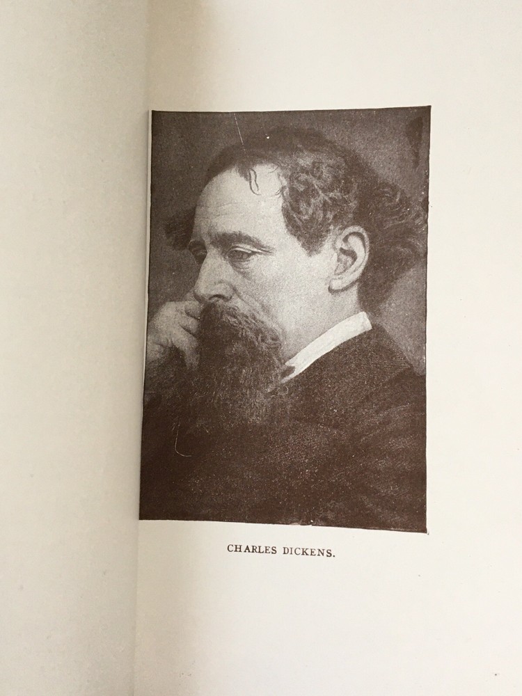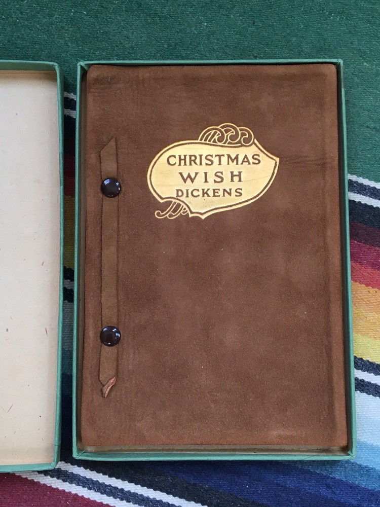 A leather bound antique early 1900s Dickens gift book in the original box, in very good condition with some light rubbing/bumping to the box (gently warped). See pictures for a closer look! Approx. 4.75 x 7 inches.