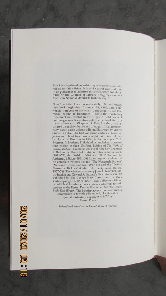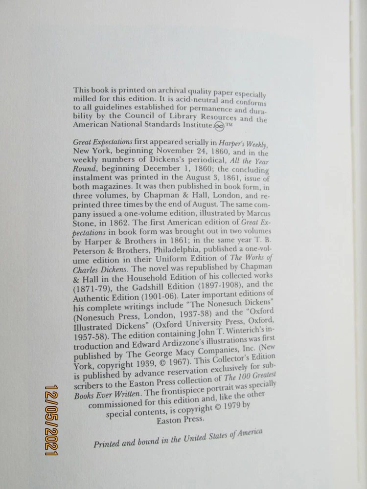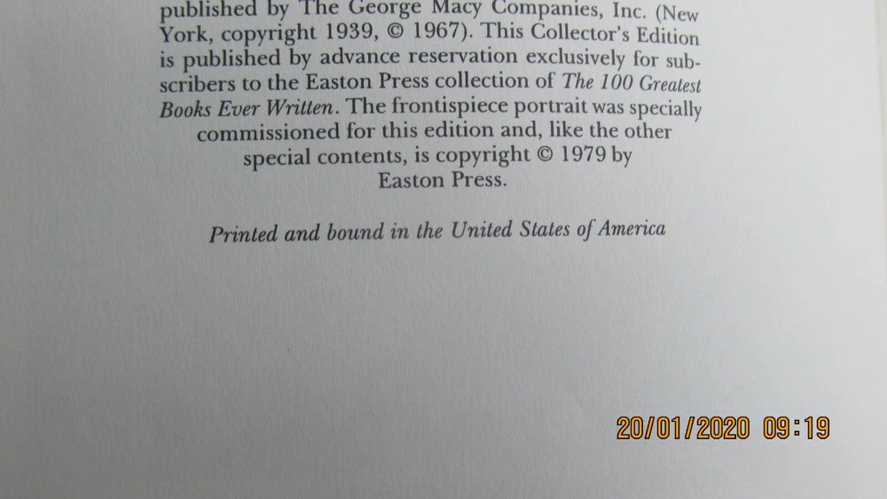 Beautiful, limited edition collector leather bound edition -1979- printed in USA by The Easton Press a perfect example of the bookbinder's art: o Printed on archival acid-neutral paper for durability o Lined with wave-patterned silky fabric on inside front and rear endleaf sections o attached page marker ribbon o Pages edges finished in gold leaf from a smoke-free home, stored in temperature and humidity controlled conditions ++++++++++ Photos and text are all part of the item description, please examine all carefully before purchasing to avoid unnecessary returns. Please contact us if you have any questions. Shipping price includes all handling - will combine shipping on multiple items. Would ask that buyer pay at time of purchase