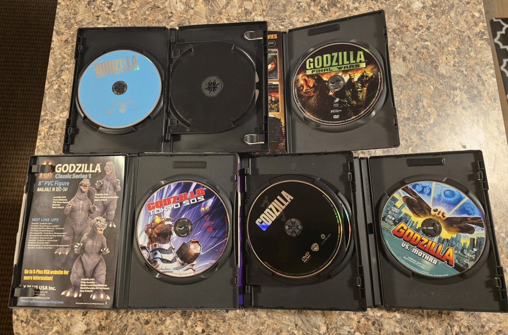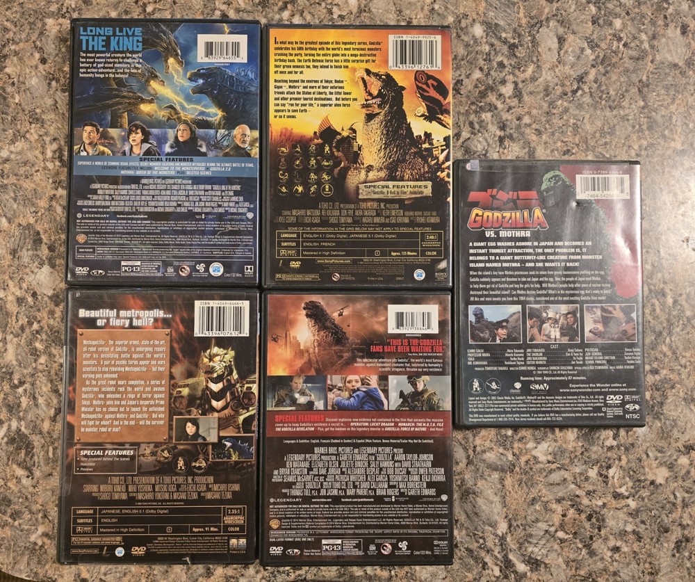 Experience the thrill of the classic monster masterpiece with this Godzilla 5 DVD, 7 disc bundle. Directed by Michael Dougherty, this science fiction horror film is sure to keep you on the edge of your seat for 132 minutes. With subtitles available in English, French, Spanish, and a PG-13 rating, this movie is perfect for a wide range of audiences. Released by Warner Home Video in 2019, this DVD set is a must-have for any film enthusiast. Featuring a talented cast and stunning special effects, Godzilla is a captivating movie that will leave you wanting more. Don't miss out on the opportunity to own this iconic film in the comfort of your own home. This bundle includes the following classic movies: 1. Godzilla King of the Monsters 2. Godzilla Final Wars 3. Godzilla TKYO S.O.S 4. Godzilla 2014 5. Godzilla vs Mothra