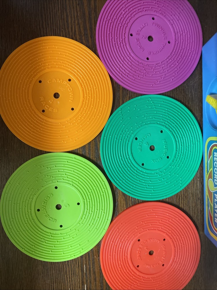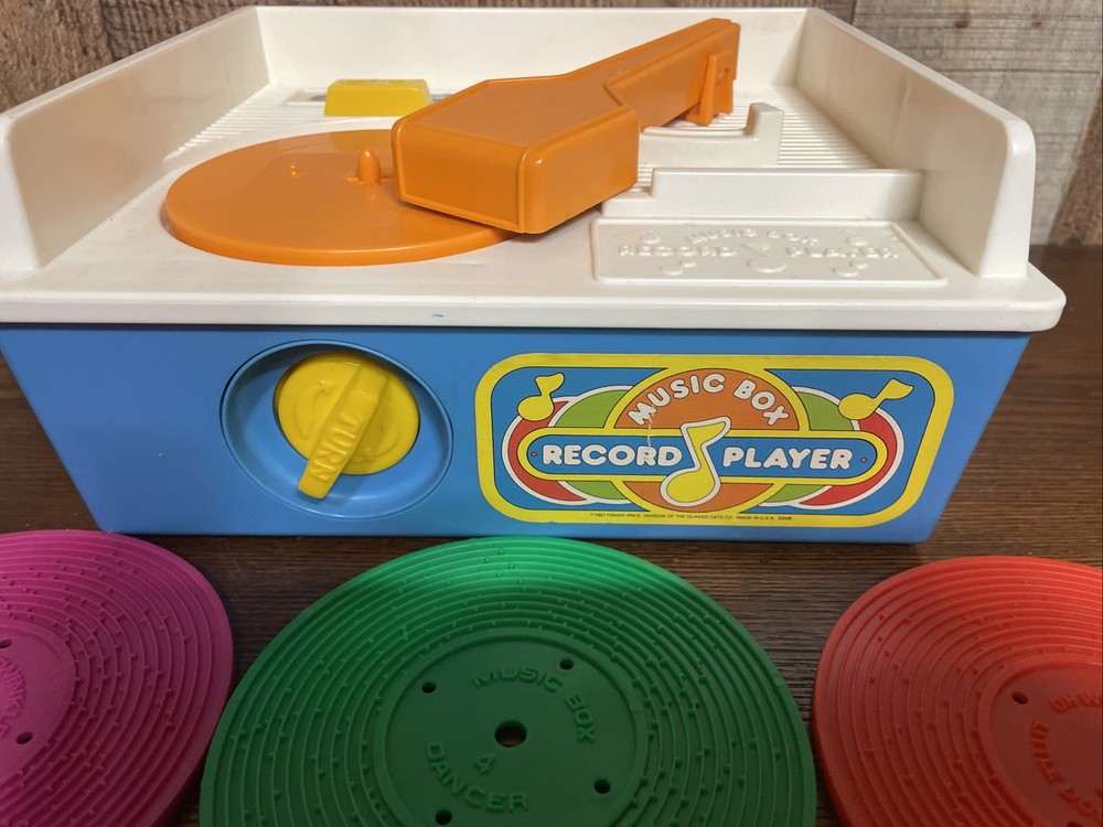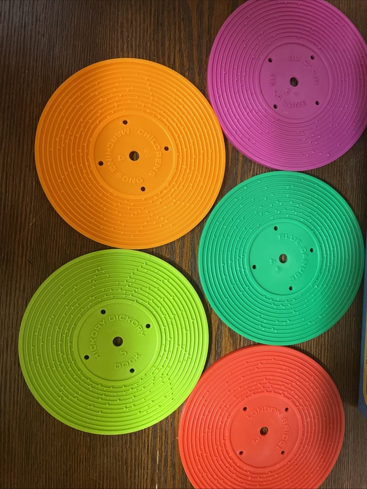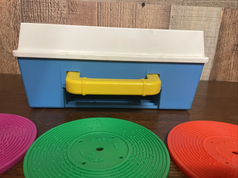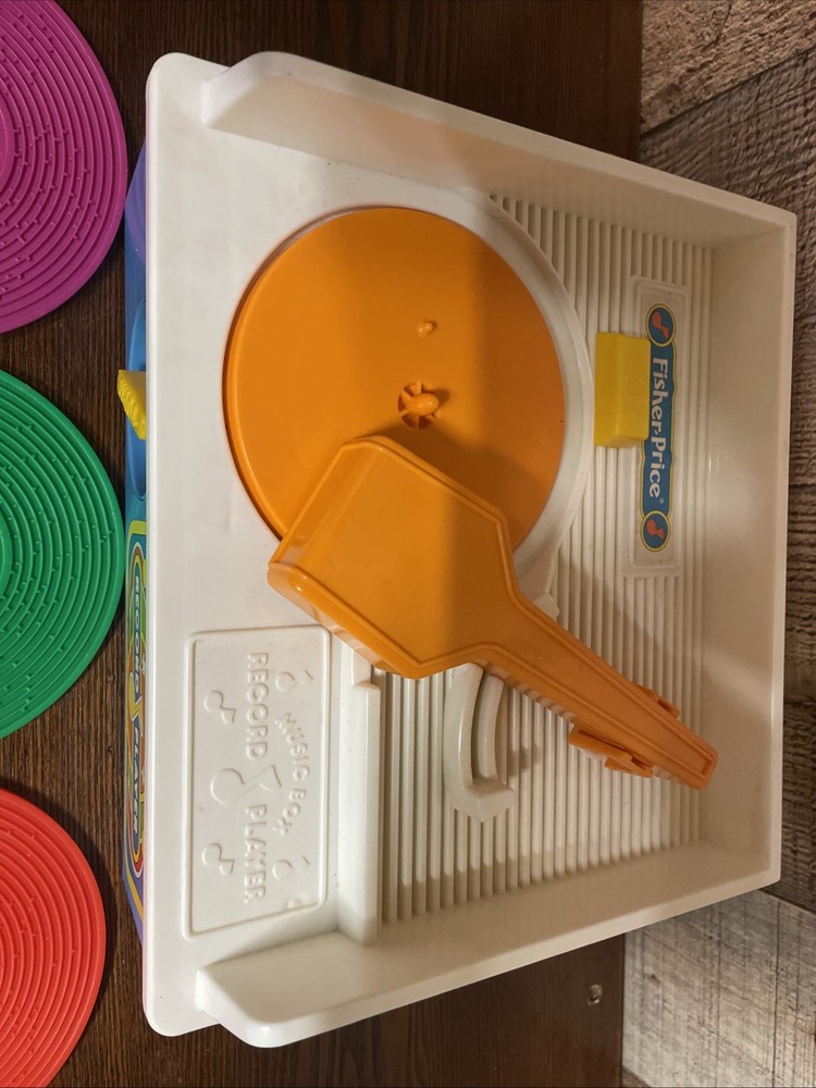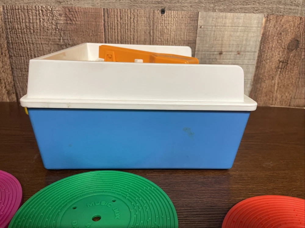 This vintage 1971 Fisher-Price Music Box Record Player 995 with all 5 records is a classic toy that provides a nostalgic and engaging experience for children ages 4 and up. Made in the United States by Fisher-Price, this toy features a functional record player that spins the records to play music, simulating a real-life jukebox experience. With its retro design and durable construction, this preschool toy offers hours of imaginative play and musical fun for young lovers of classic children's music.