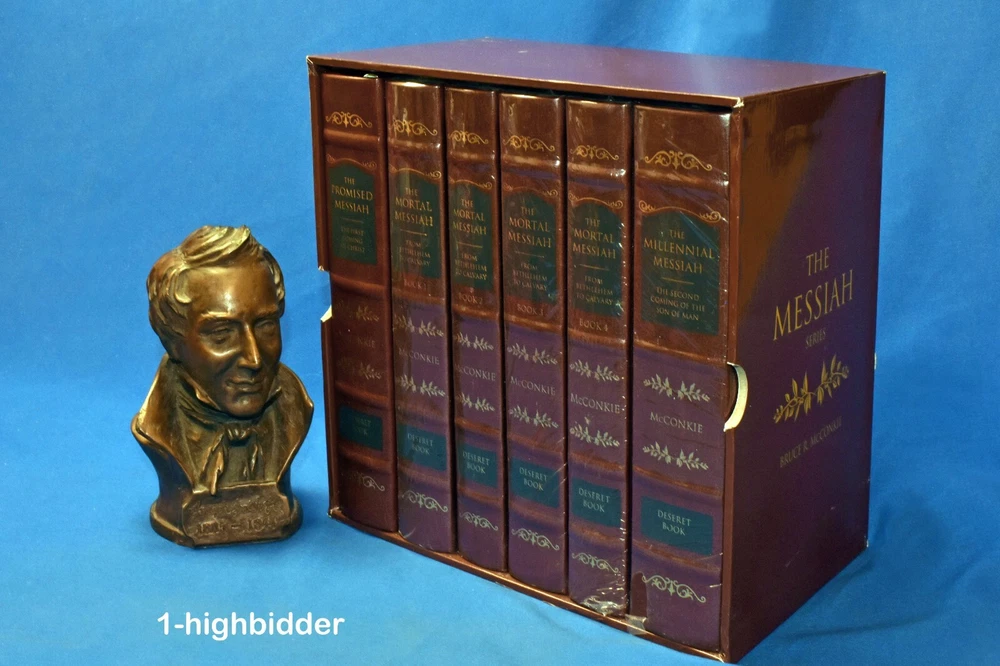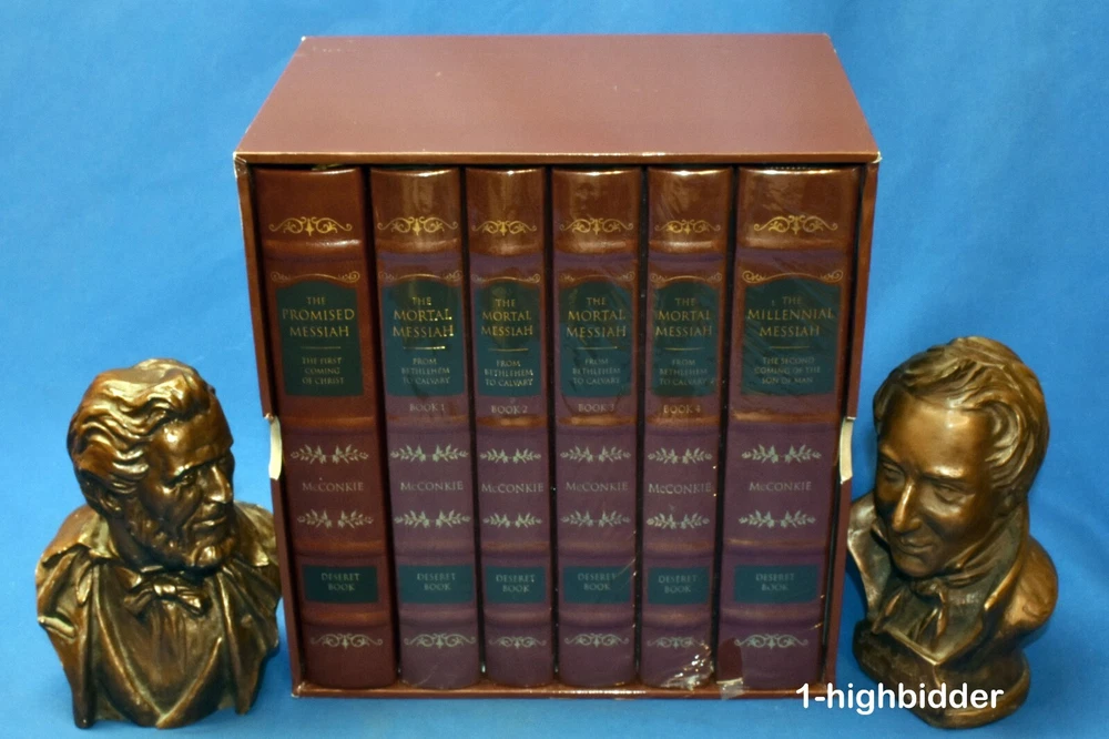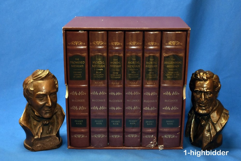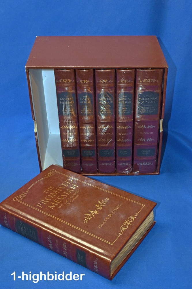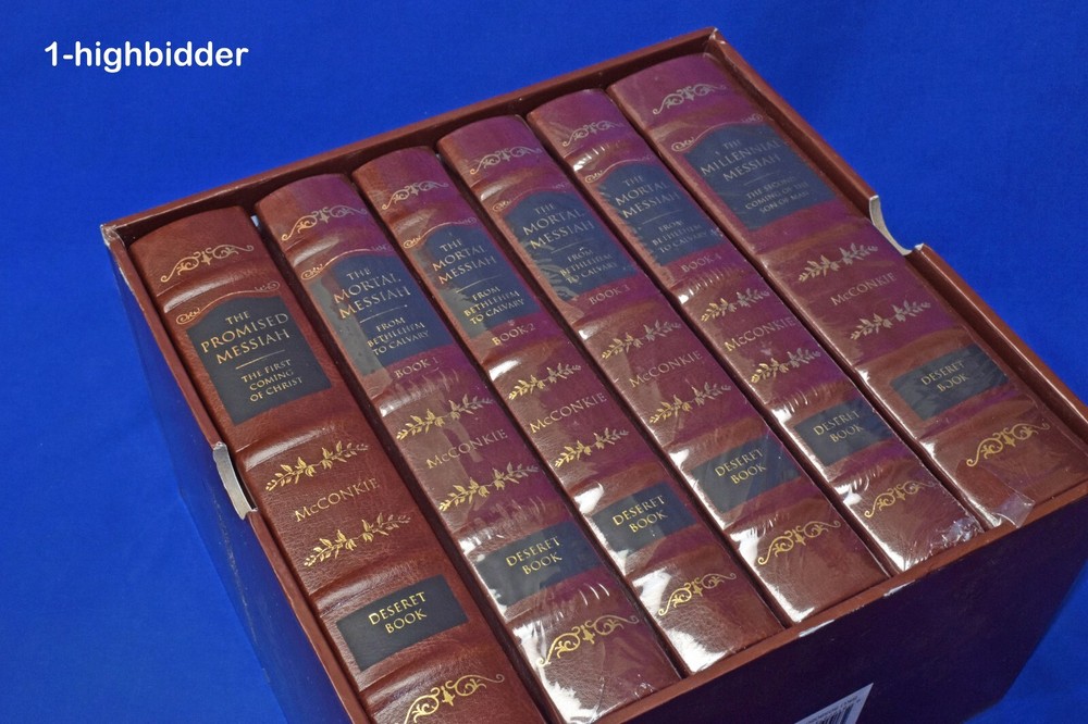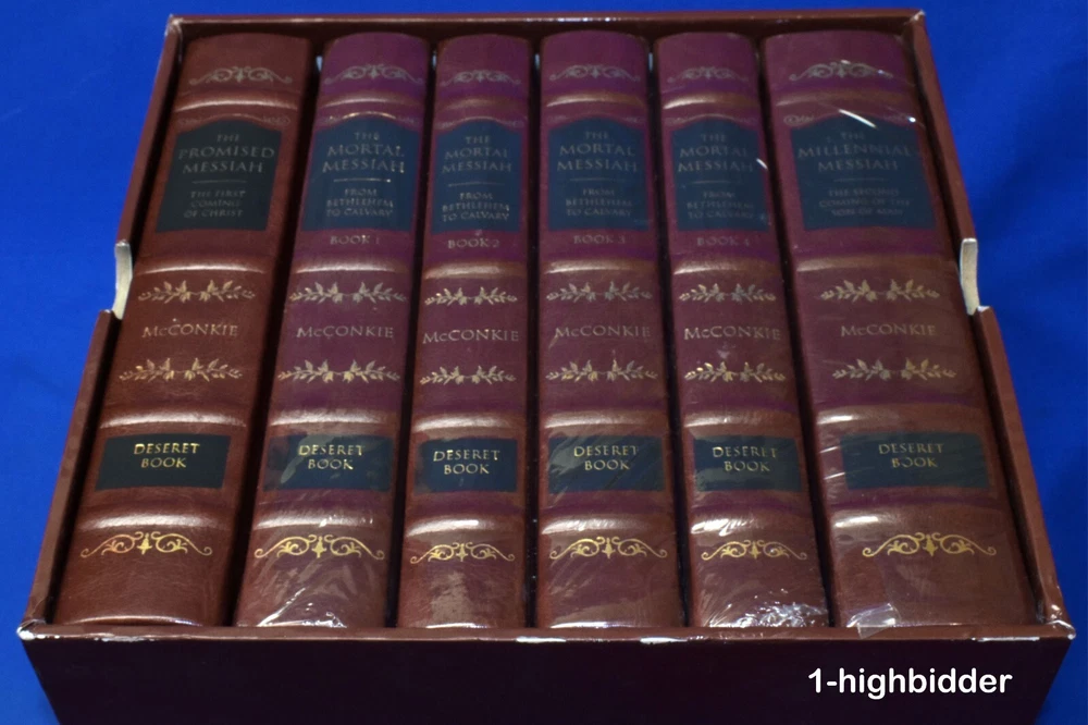 Complete Leather Set 6 Messiah Hardcover McConkie LDS Mortal Promised Millennial _________________________________ The Mortal Messiah Series (Bound in Reddish-Brown Leatherette) by Bruce R. McConkie Published by Deseret Book (1981) Suggested Retail on this set in 1981 was $149.99 (The 2010 edition, retailed for $299.99) COMPLETE NEW CONDITION REDDISH-BROWN LEATHERETTE HARDCOVER SET in ORIGINAL SLIPCASE! FIVE OF THE SIX VOLUMES ARE STILL IN THEIR ORIGINAL SHRINK-WRAP! This is a complete set of 6 Messiah Books by Bruce R McConkie. This set includes: The Promised Messiah The Mortal Messiah Book 1 The Mortal Messiah Book 2 The Mortal Messiah Book 3 The Mortal Messiah Book 4 The Millennial Messiah Condition: This like-new complete 6-volume set of Mortal Messiah by Bruce R. McConkie is a beautiful collector’s edition, bound in rich reddish-brown leatherette with gold-gilded page edges and sewn-in silk ribbon markers in each volume. Five of the six volumes are still sealed in their original shrink-wrap. Volume One is the only one unwrapped, but it remains in pristine condition with a tight binding, flawless cover, and bright white pages free from any writing, underlining, highlighting, folds, rips, or tears. All volumes have been carefully handled and stored, preserving their exceptional condition. The set is housed in the original slipcase, which is sturdy and fully intact but does show some minor shelf wear, as clearly shown in the photos. This is an outstanding set for collectors, scholars, or anyone seeking a beautiful edition of this classic work. You can buy with confidence from a seller who provides detailed, accurate descriptions and never uses stock photos. Your books will be securely packaged and shipped with care. Please feel free to reach out with any questions—thank you for looking! Additional Note: I will have volume 1 re-shrink-wrapped to match the other 5 volumes About the Books: The Messiah Series, penned by Elder Bruce R. McConkie is 6-part series concerning our Lord and Savior Jesus Christ. Using the scriptures and various other sources Elder McConkie quite poetically and artistically writes about Jesus Christ starting from the premortal existence, his mission, continuing from his mortal ministry, the accomplishments of our Savior, and ending with what the scriptures tell us concerning the last days. The Promised Messiah: This volume presents a careful analysis of prophecies concerning the First Coming of the Lord. The discourse deepens our understanding that Christ is the Savior, that he did indeed come to make atonement for the sins of men and thus opened up the way for them to return to his presence. The Mortal Messiah, Volume 1: Beginning with the prophecies that were coming to pass as the Advent of the Messiah approached, and expanding on Jesus Christ's childhood, His baptism, and early ministry, this landmark Spirit-filled volume is worth reading more than once. The Mortal Messiah, Volume 2: Delving into the Savior’s Galilean ministry and reviewing the Sermon on the Mount and much of the Pharisaic opposition, volume two of The Mortal Messiah will provide readers with valuable insights. The Mortal Messiah, Volume 3: This volume continues with the life of Christ at the peak of his Galilean ministry, with miraculous healings and the feeding of the four thousand, and continues through to the Savior’s sermon on the Mount of Olives which includes the Parable of the Ten Virgins and the Parable of the Talents. The Mortal Messiah, Volume 4: Jesus — the Savior of the world, the Messiah — is preparing himself to die. His mortal ministry among men on earth is nearing an end, and he must prepare his disciples for what is to be — his betrayal and crucifixion. The Millennial Messiah: Prophecies from ancient as well as modern scriptures are recounted, explained, and compared as the author delves into every aspect of the Savior's second advent. No careful reader can complete this book without adding significantly to his knowledge about the Christian world's most-heralded future event. About the Author, Bruce R. McConkie: Bruce Redd McConkie (July 29, 1915--April 19, 1985) was an influential Apostle of the Church. He is remembered by the many doctrinal books he wrote, such as Mormon Doctrine and The Messiah Series, and for writing the chapter headings for the Standard Works. Mormon Doctrine, published in 1958, was a first attempt to compile the doctrines of the Church into a single, comprehensive volume, and it was solely Elder McConkie's work. However, the tone of the book was extremely authoritative, and though some of the doctrines presented were not approved by the First Presidency, the book was popular and looked upon as authoritative by members of the Church. The First Presidency oversaw revisions to the book, at first reluctant to republish it in any form. New editions were released in 1966 (with a more moderate tone) and 1978 (after the Priesthood was given to all worthy male members of the Church). Elder McConkie was born in Ann Arbor, Michigan, to Oscar Walter McConkie and Margarat Vivian Redd. During his childhood, he lived in Monticello, Utah; Salt Lake City; and Ann Arbor, Michigan. He attended the University of Utah. While there, he met Amelia Smith. He served a mission to the Eastern States between 1934 and 1936 and participated in the Palmyra Pageant in 1936. He married Amelia, (1916 - 2005), daughter of Joseph Fielding Smith in 1937, just after they both graduated from the University. McConkie later earned his Juris Doctor degree. McConkie was called into active duty during World War II. He then worked for a time as a newspaper reporter. He was called to the First Council of the Seventy in 1946, and then to the Quorum of the Twelve Apostles in 1972, where he served until his death. He served as Mission President in Southern Australia from 1961 to 1964, while a member of the Seventy. Elder McConkie famously wrote the note "It is my province to teach to the C