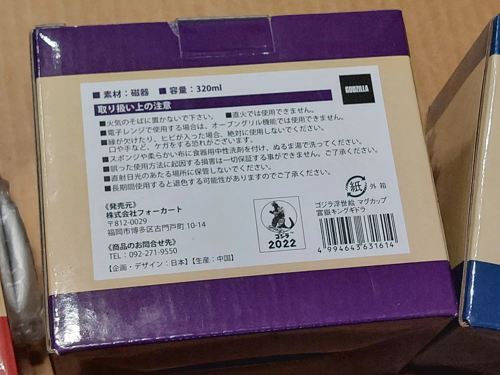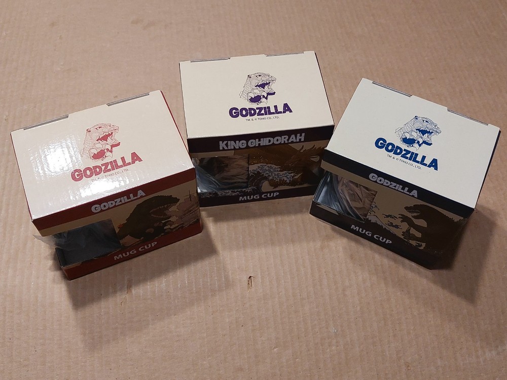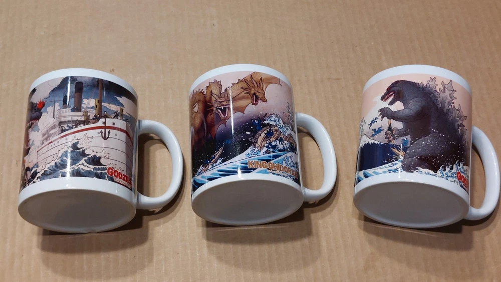 Brand new, never used complete set of three Folcart Officially Licensed Ukiyo-e graphic art print style Godzilla mugs collection. Each 10.8 fluid oz. (320 ML) mug comes in its own nice giftbox package (see pics): (1) Godzilla "Large Monster Ocean Appearance" 508756; (2) Godzilla "Thirty-six Views of Tomitake Large Monsters" 508749; (3) " Fugaku King Ghidorah" Godzilla 631614 Ships from a US-based seller in New York City. Please contact me for any questions. Folcart Product Description: GODZILLA/Godzilla Series Mug Cups of "Large Monster Ocean Appearance Map" , "Fugaku King Ghidorah", and "Thirty-six Views of Tomitake Large Monsters" Ukiyo-e Katsushika Hokusai Gifts. The world-famous monster "Godzilla" and Japanese Ukiyo-e are the strongest collaboration! It's a "mug". It is popular both at home and abroad. It is a product that we would like you to enjoy Japanese "Iki" in a retro atmosphere. It can be used easily both at home and outdoors.