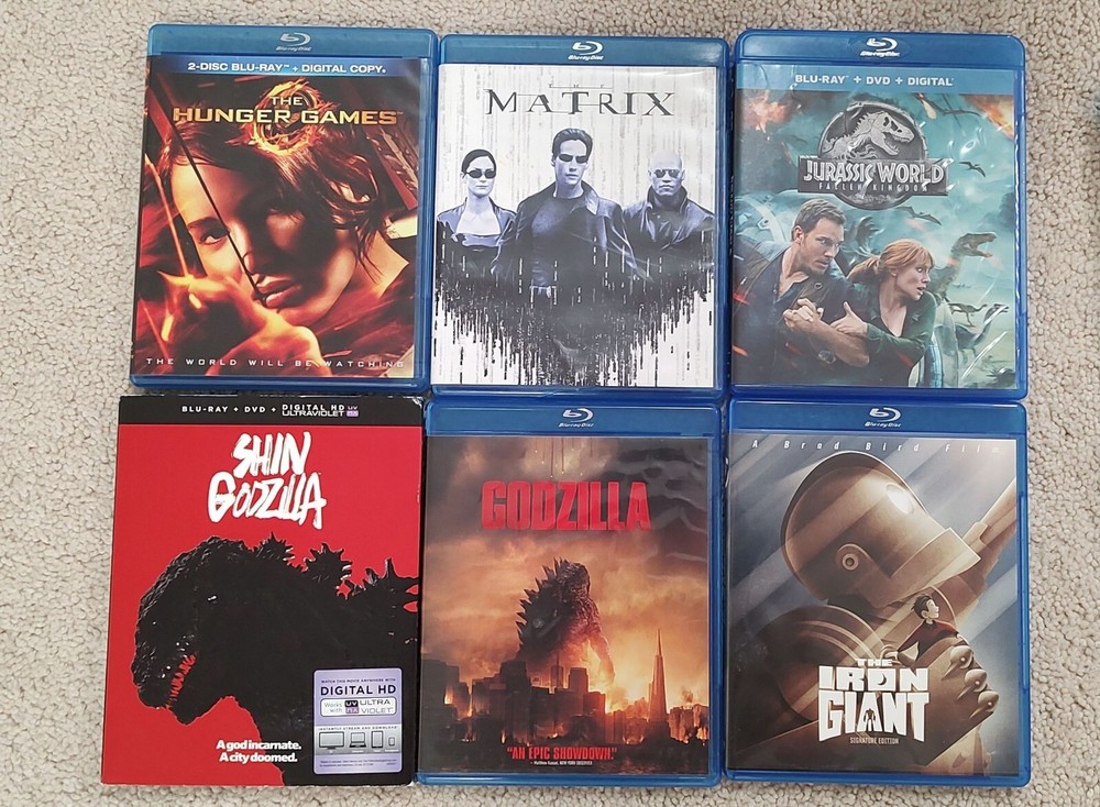 2 lots of cool movies, choose whichever you like. Lot #1 ELYSIUM PROMETHEUS I AM LEGEND SING KONG SKULL ISLAND READY PLAYER ONE Lot #2 THE HUNGER GAMES MATRIX JURASSIC WORLD KINGDOM FALLEN SHIN GODZILLA GODZILLA 2014 IRON GIANT