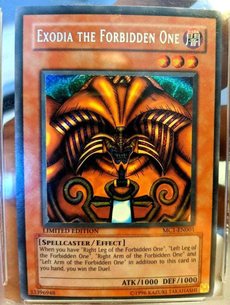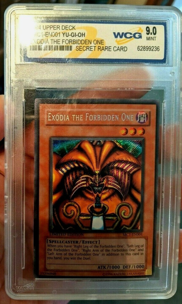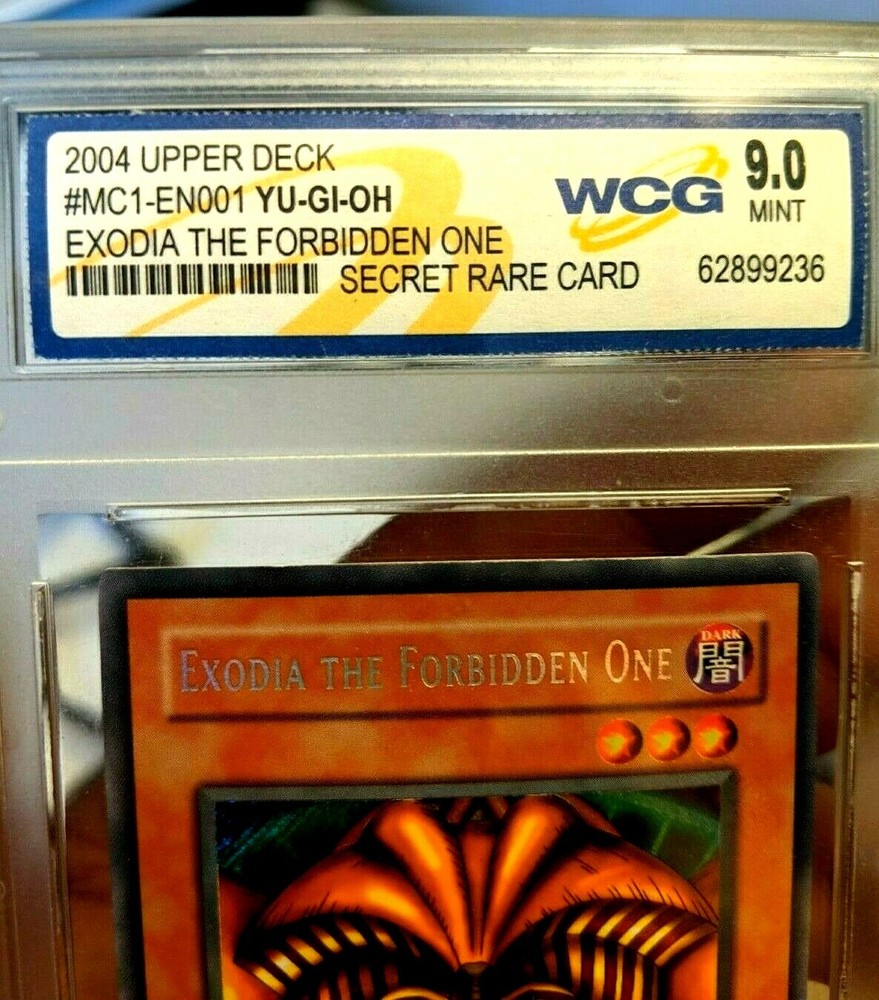 YU GI OH Exodia The Forbidden One 9.0 MINT Graded Secret Rare Holo Card #MC1-EN001 Has some scratches on the case. A COOL COLLECTIBLE CARD!! . Shipped with USPS First Class. HAPPY BIDDING!!