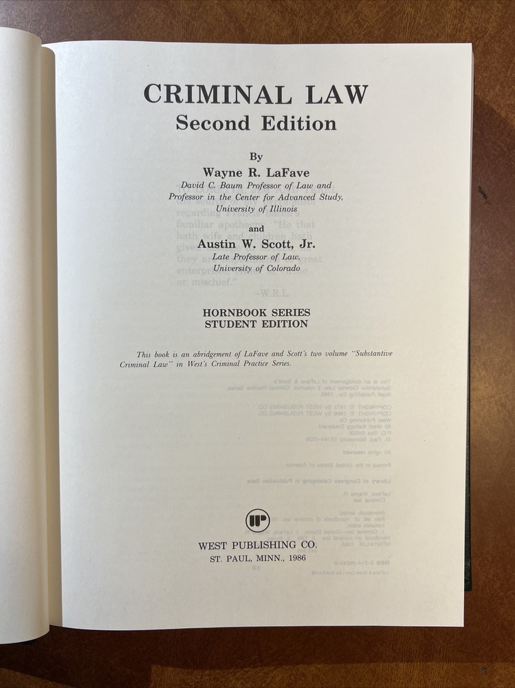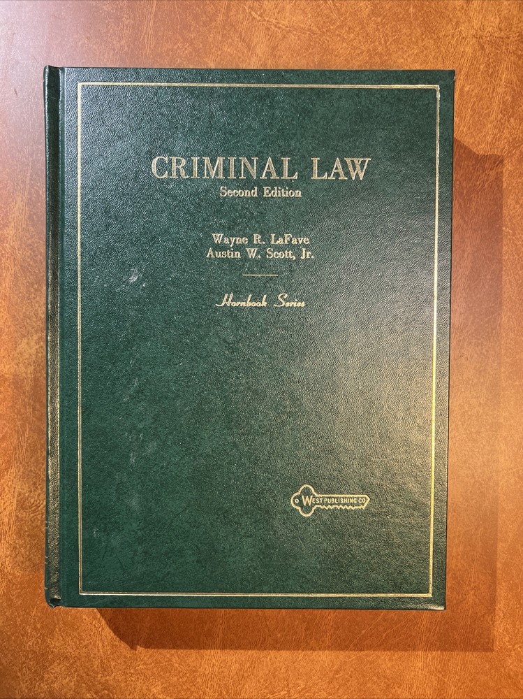 Criminal Law 2nd Edition by LaFave and Scott Hardcover 1986 West Pub Co