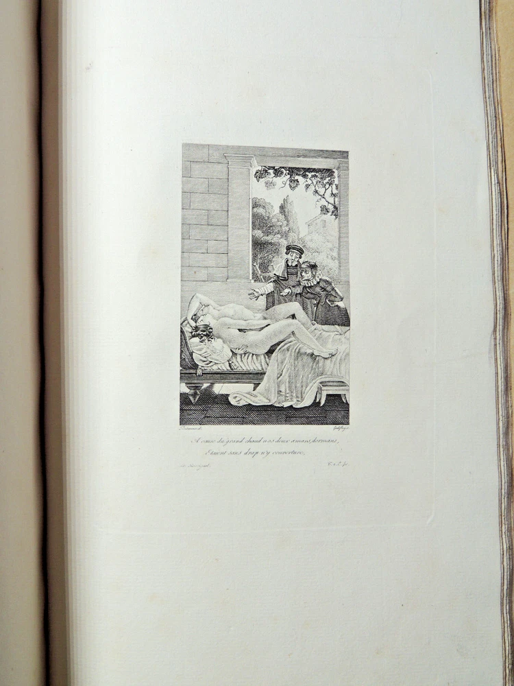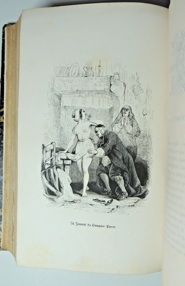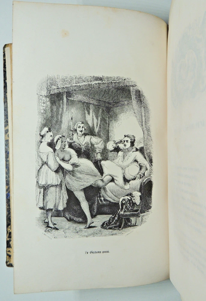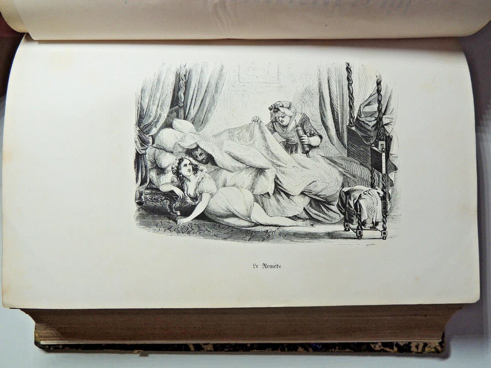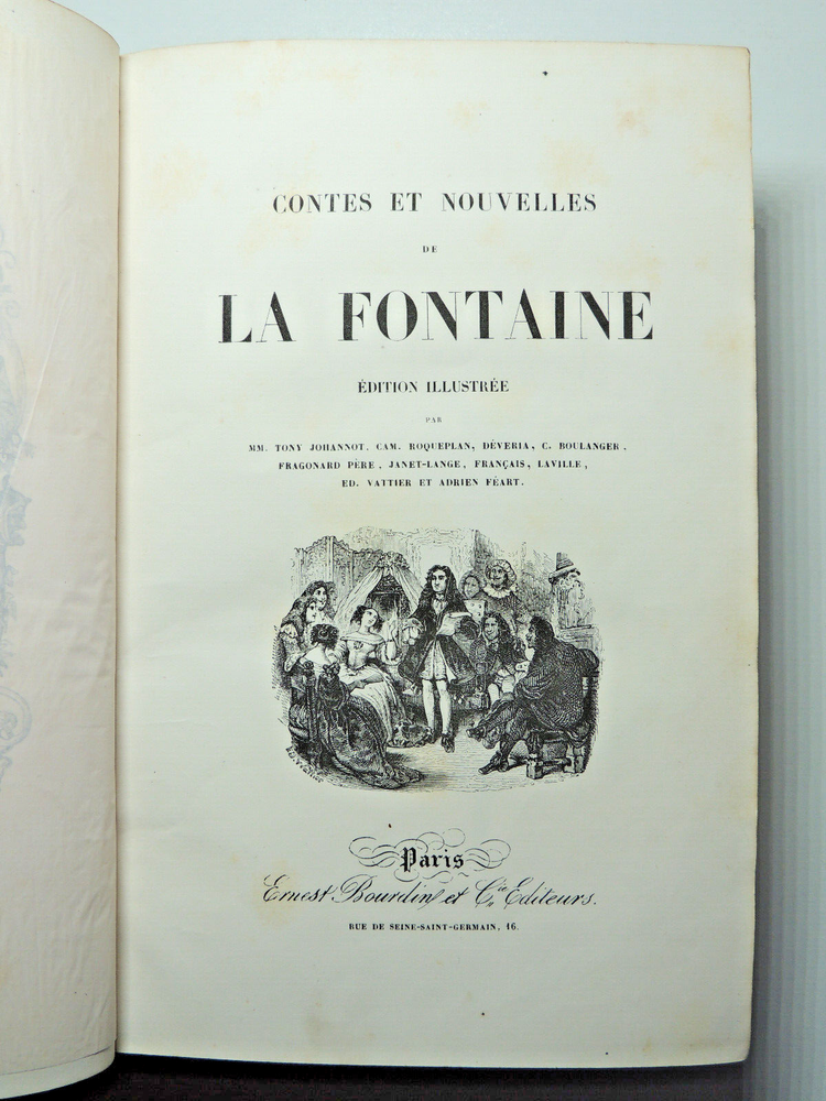 Curiosa. Tales And Stories By La Fontaine + Series Of Engravings 1839 (Rare) The description of this item has been automatically translated. If you have any questions, please feel free to contact us. Curiosa. Tales and short stories from La Fontaine. Edition illustrated by MM. Tony Johannot, cam. Roqueplan, Deveria, C. Boulanger, Fragonard Père, Janet-Langge, French, Laville, ed. Vattier and Adrien Féart. Complete with the five books of Tales and News from La Fontaine. Very numerous illustration plates in black including one as a frontispiece and intaglio. Large volume in8, 24x16 bound in half leather, tear on 3 pages, ungravity, very beautiful, unusual copy. 534pp + double suite of 16 fine intaglio engravings Paris, Ernest Bourdin, ss date 1940 Curiosa. Tales and short stories from La Fontaine. Edition illustrated by MM. Tony Johannot, cam. Roqueplan, Deveria, C. Boulanger, Fragonard Père, Janet-Langge, French, Laville, ed. Vattier and Adrien Féart. Complete with the five books of Tales and News from La Fontaine. Very numerous illustration plates in black including one as a frontispiece and intaglio. Large volume in8, 24x16 bound in half leather, tear on 3 pages, ungravity, very beautiful, unusual copy. 534pp + double suite of 16 fine intaglio engravings Paris, Ernest Bourdin, ss date 1940 Caractéristiques spéciales Illustré Auteur La Fontaine Reliure Cuir Langue Français Époque XIXème Nom erotique Sujet Livres illustrés