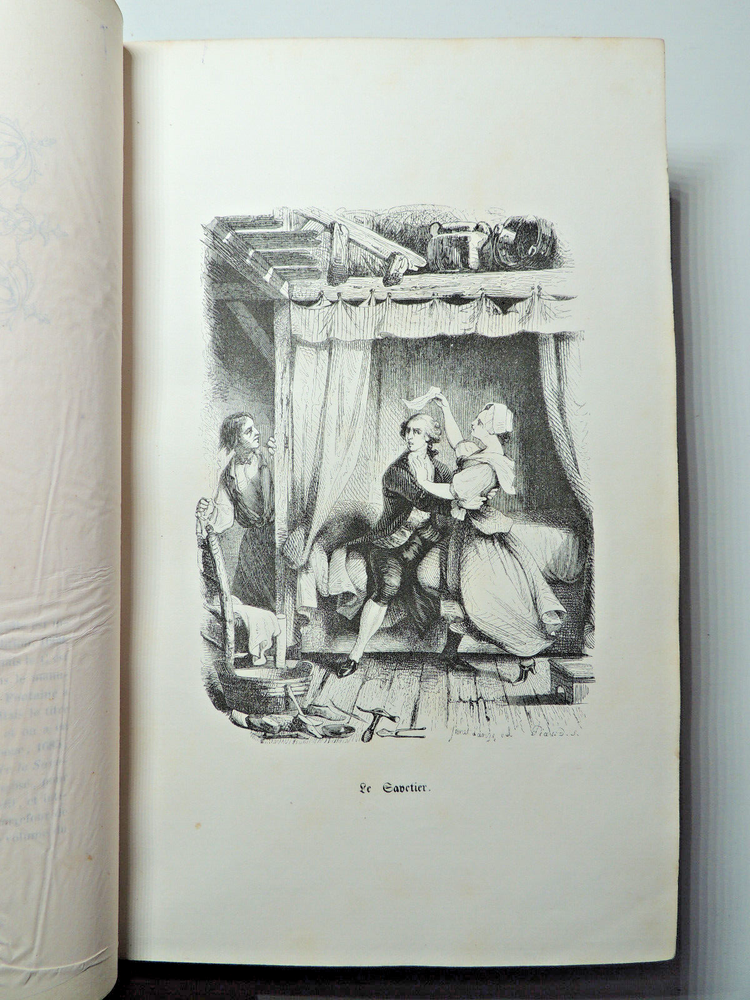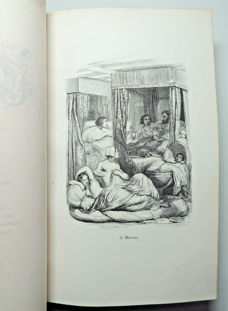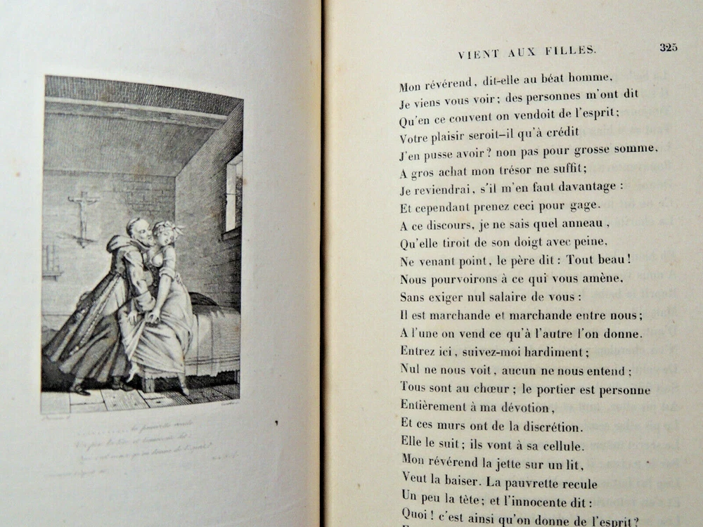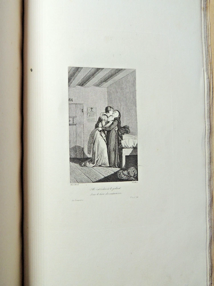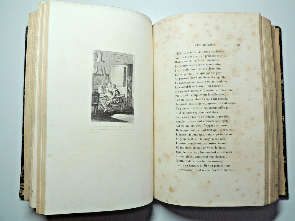 Curiosa. Tales And Stories By La Fontaine + Series Of Engravings 1839 (Rare) The description of this item has been automatically translated. If you have any questions, please feel free to contact us. Curiosa. Tales and short stories from La Fontaine. Edition illustrated by MM. Tony Johannot, cam. Roqueplan, Deveria, C. Boulanger, Fragonard Père, Janet-Langge, French, Laville, ed. Vattier and Adrien Féart. Complete with the five books of Tales and News from La Fontaine. Very numerous illustration plates in black including one as a frontispiece and intaglio. Large volume in8, 24x16 bound in half leather, tear on 3 pages, ungravity, very beautiful, unusual copy. 534pp + double suite of 16 fine intaglio engravings Paris, Ernest Bourdin, ss date 1940 Curiosa. Tales and short stories from La Fontaine. Edition illustrated by MM. Tony Johannot, cam. Roqueplan, Deveria, C. Boulanger, Fragonard Père, Janet-Langge, French, Laville, ed. Vattier and Adrien Féart. Complete with the five books of Tales and News from La Fontaine. Very numerous illustration plates in black including one as a frontispiece and intaglio. Large volume in8, 24x16 bound in half leather, tear on 3 pages, ungravity, very beautiful, unusual copy. 534pp + double suite of 16 fine intaglio engravings Paris, Ernest Bourdin, ss date 1940 Caractéristiques spéciales Illustré Auteur La Fontaine Reliure Cuir Langue Français Époque XIXème Nom erotique Sujet Livres illustrés