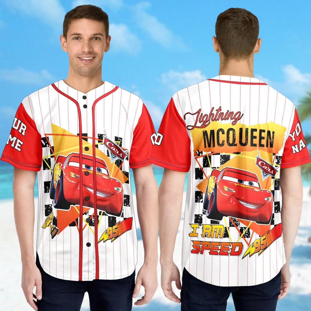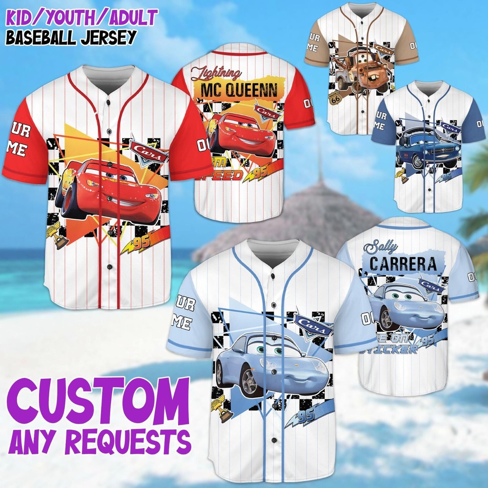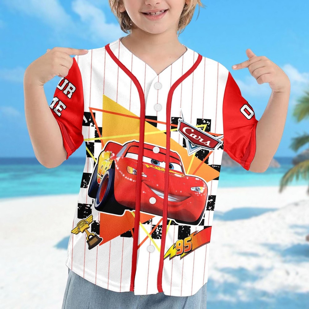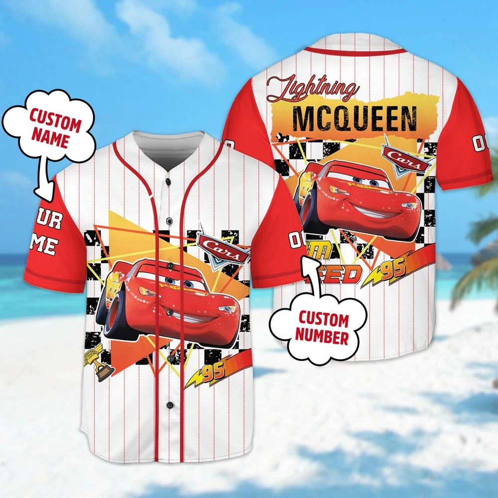 Custom Disney Cars Lightning McQueen Baseball Jersey for Kids & Adults