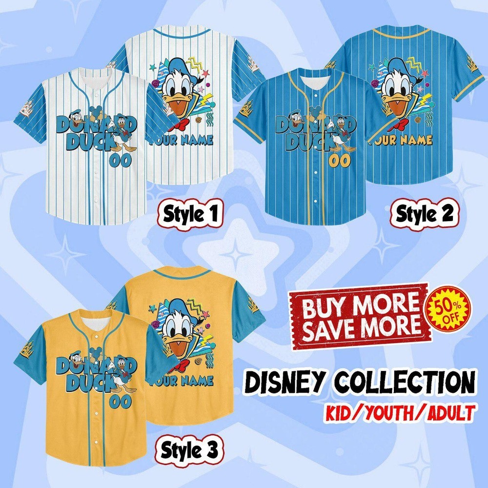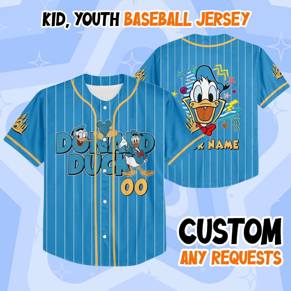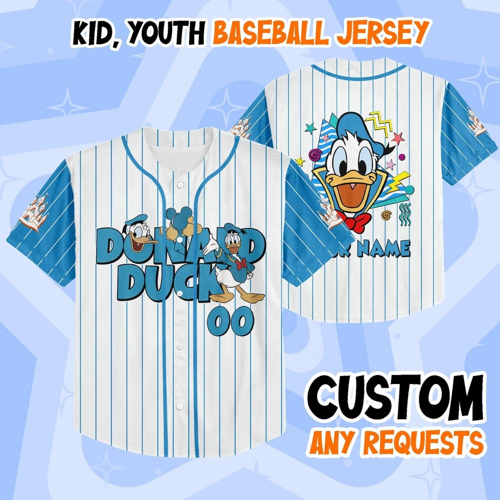 Custom Donald Duck Disney Baseball Jersey for Kids Men Women Gift Disneyland