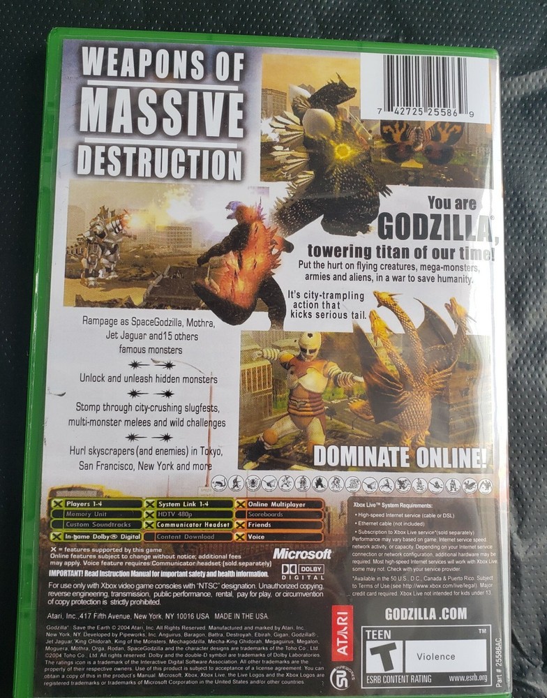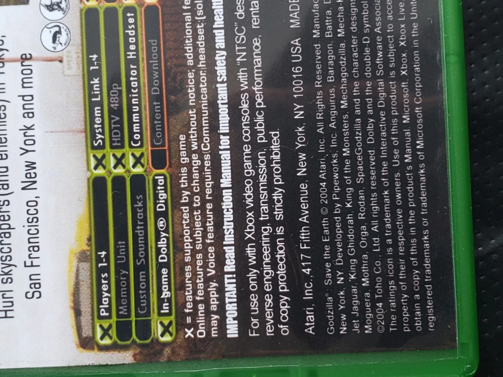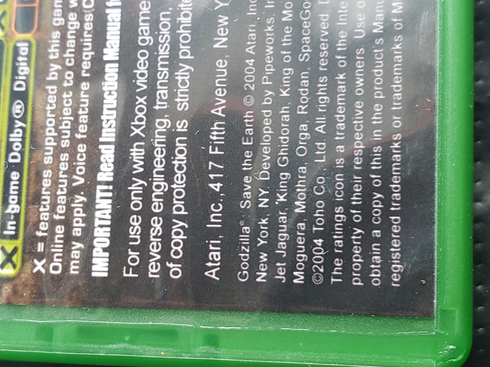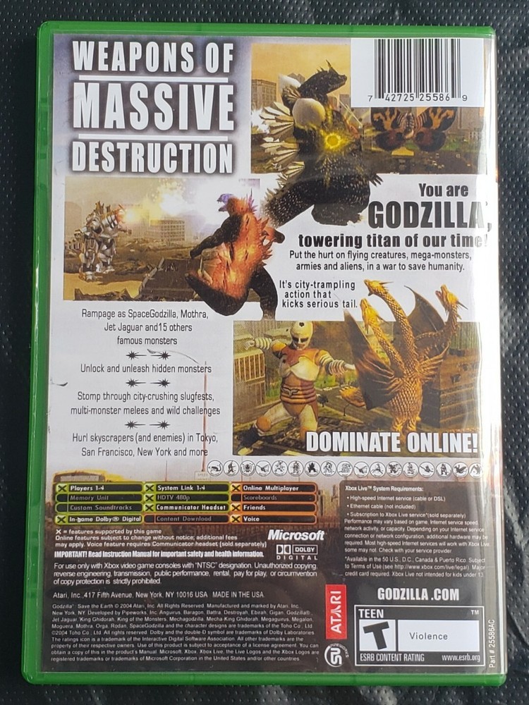 Custom recreated original style Godzilla Saves the Earth cover insert with green colored case. (green is not exact match to original Xbox cases but looks better than black). Quality replacement cover insert inside a replacement green XBOX media case. Pre-Cut with the greatest attention to detail. Thin enough to fit perfectly in an original case. PRINTED in Best Quality, hi-resolution (300dpi) on 115 gsm Photo Paper using an Inkjet HP Envy 6055. Like what is pictured. Please feel free to ask any question. Check out my other listings for more Vintage and retro 80s, 90s, MOTU, TMNT, Marvel, DC, WWF/WWE, Videogame/ Nintendo, Genesis, Xbox, PlayStation stuff and more! New listings daily! USPS Mail with Tracking Information. International Shipping options available when applicable. Thank you and make it a great day! *Quality is pretty good compared to what you normally download online. See closeups of cover. What I did was to recreate the text and Logo icons and some of the generic Xbox branding so that the cover looks nice and sharp compared to what you normally find.