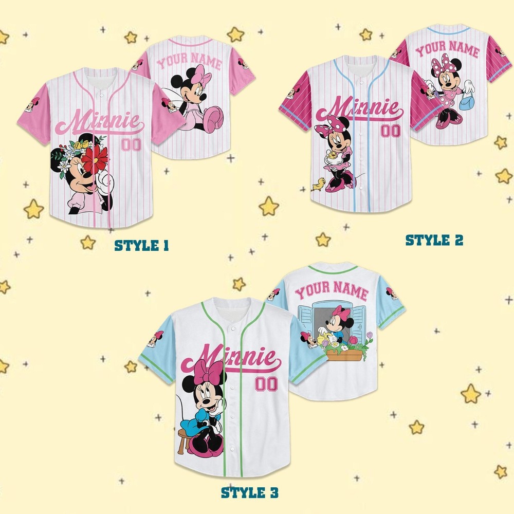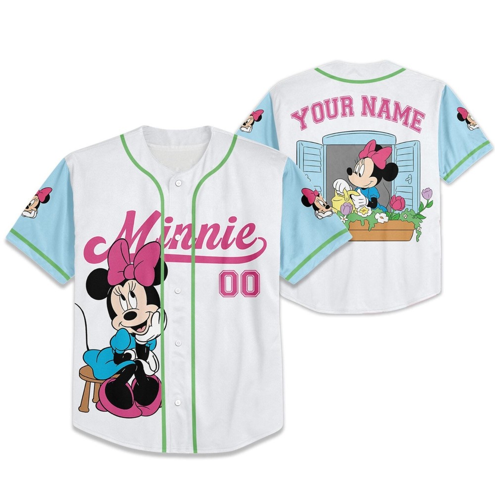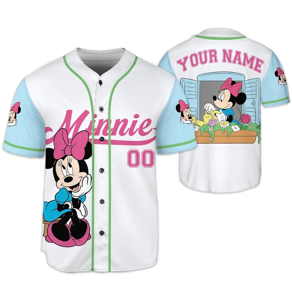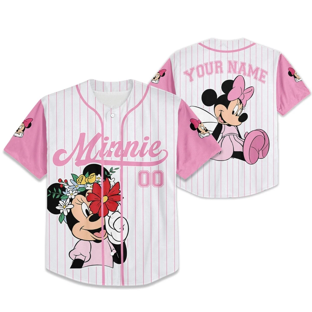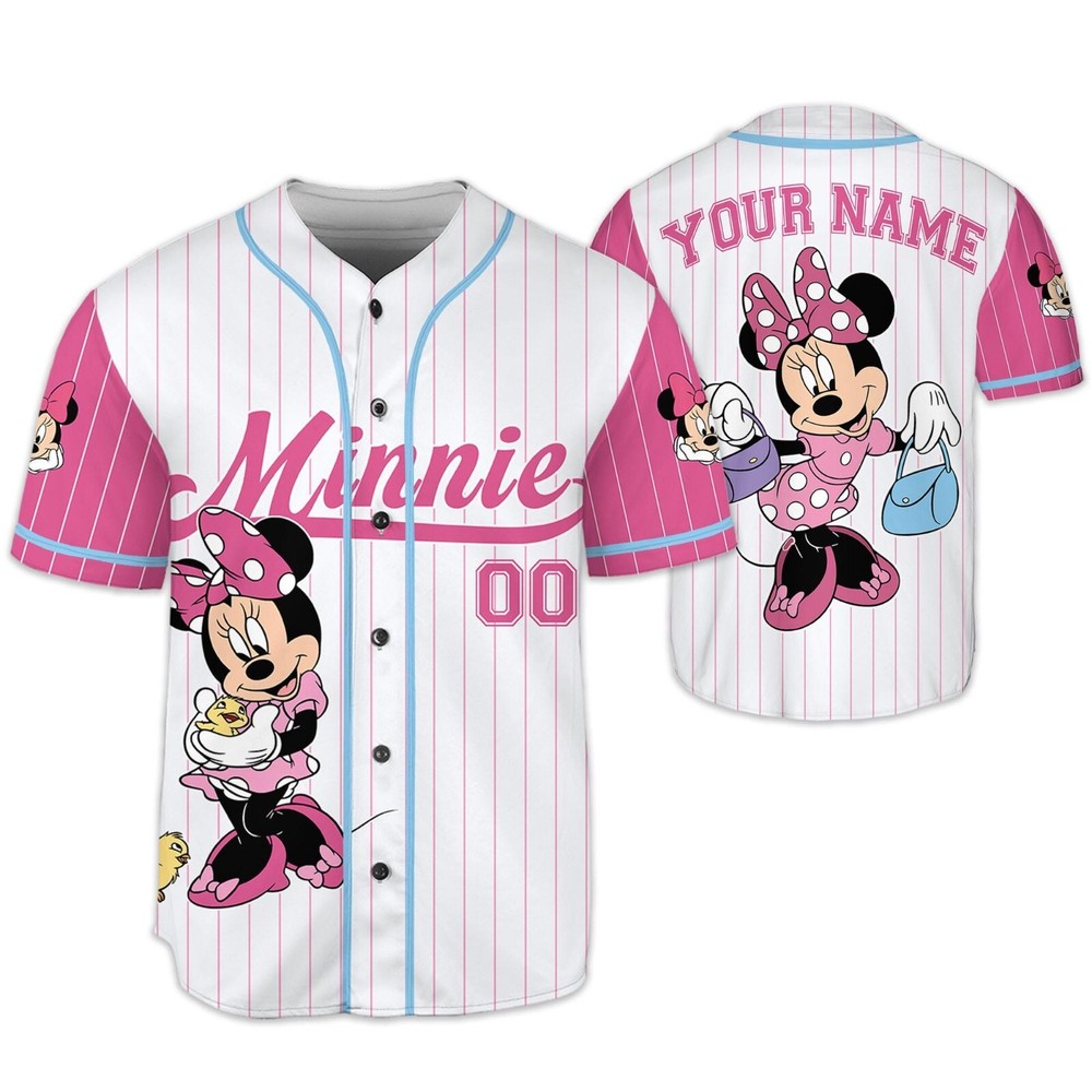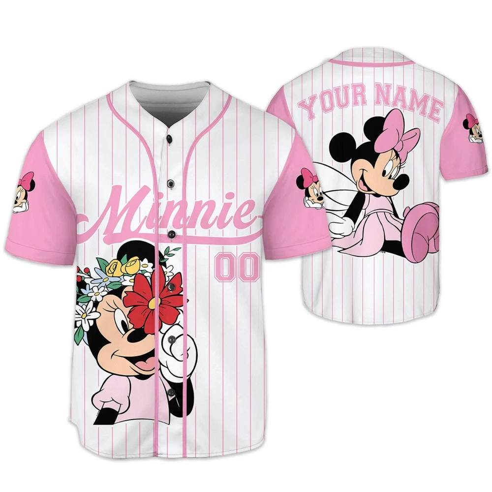 Custom Minnie Mouse Disney Baseball Jersey for Kids Adults Birthday Gift