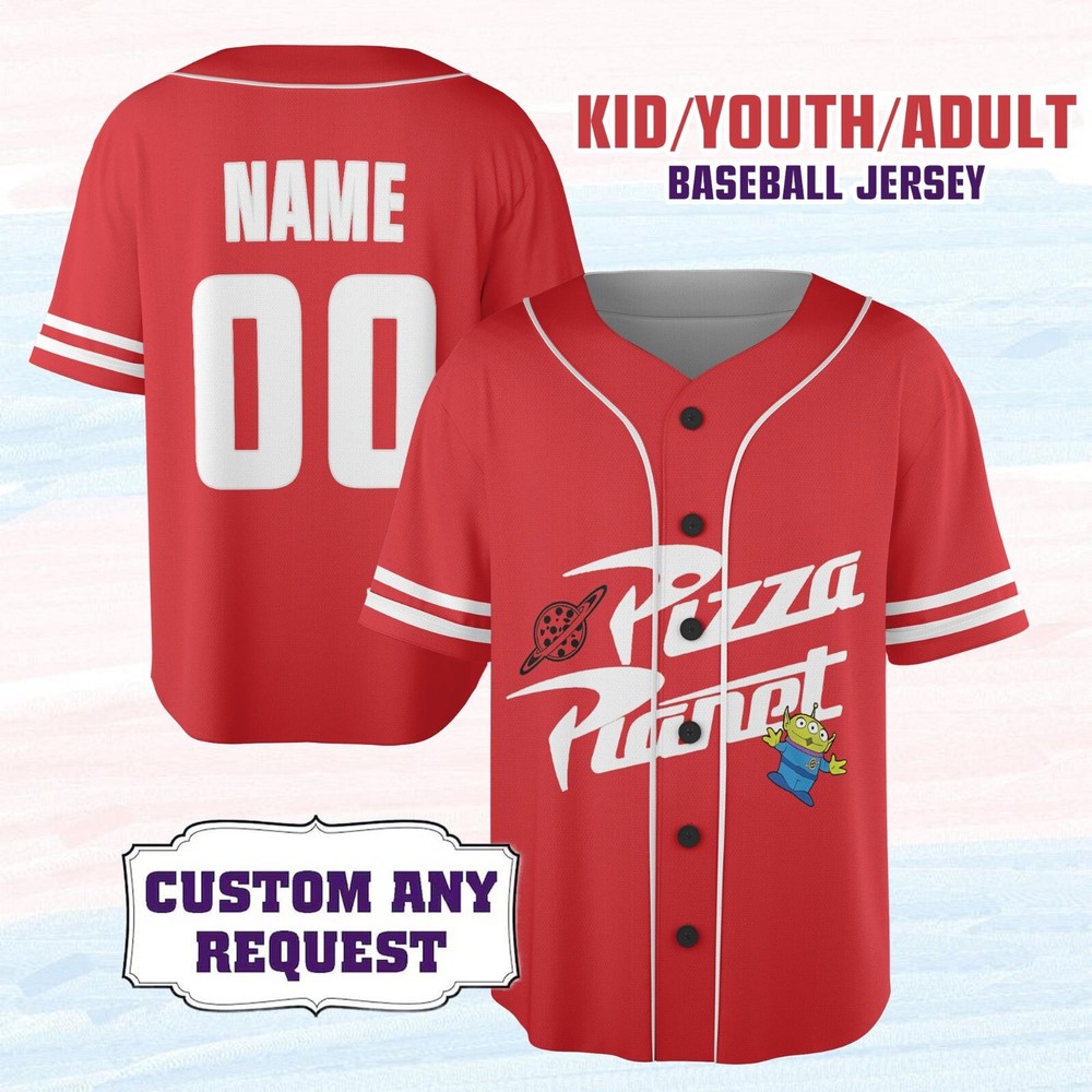 Custom Pizza Planet Toy Story Baseball Jersey for Kids Men Women - Red Gift
