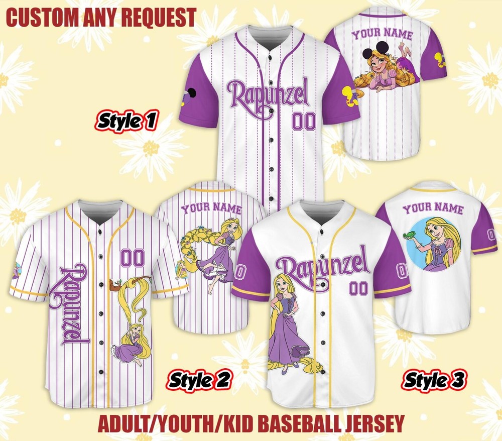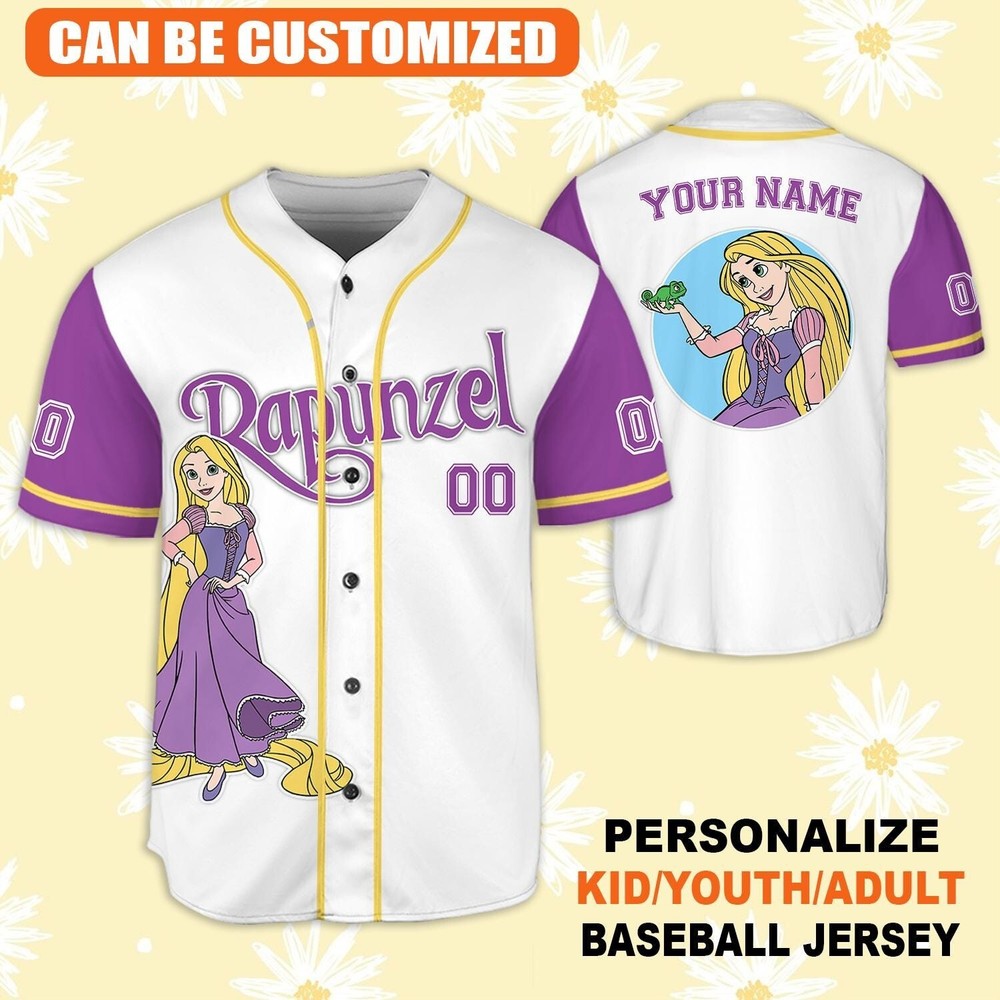 Custom Rapunzel Disney Tangled Baseball Jersey for Kids Adults Unisex Gift