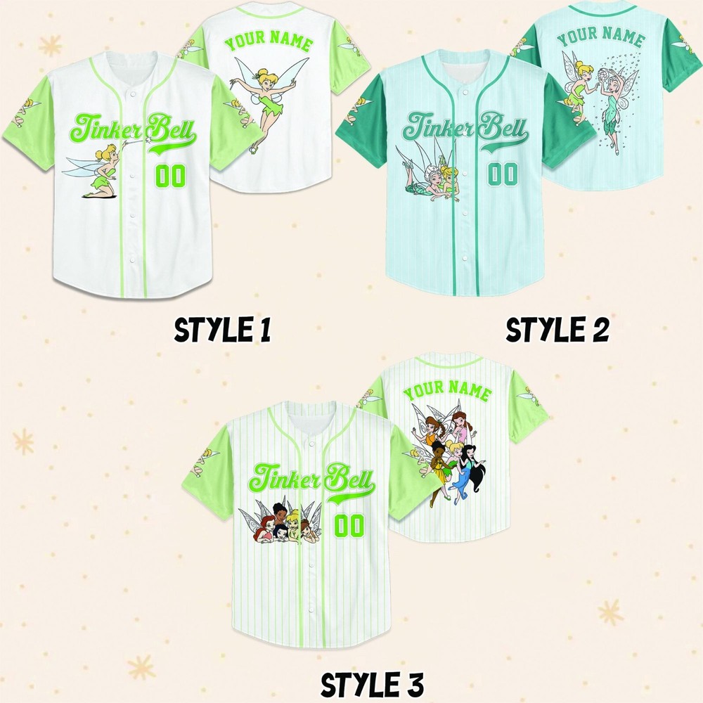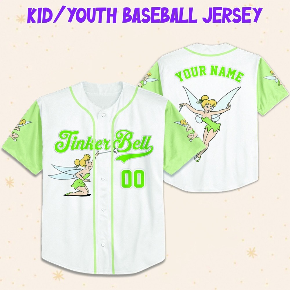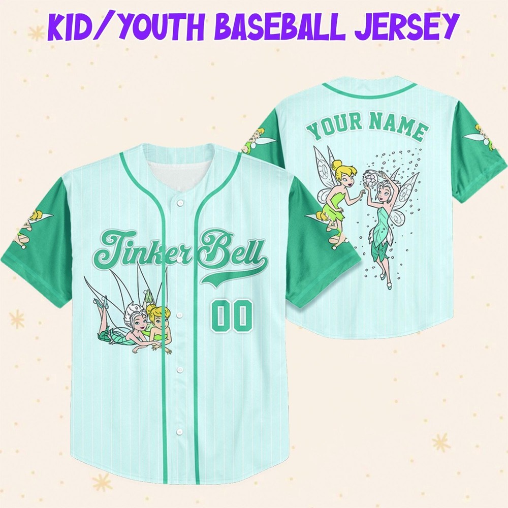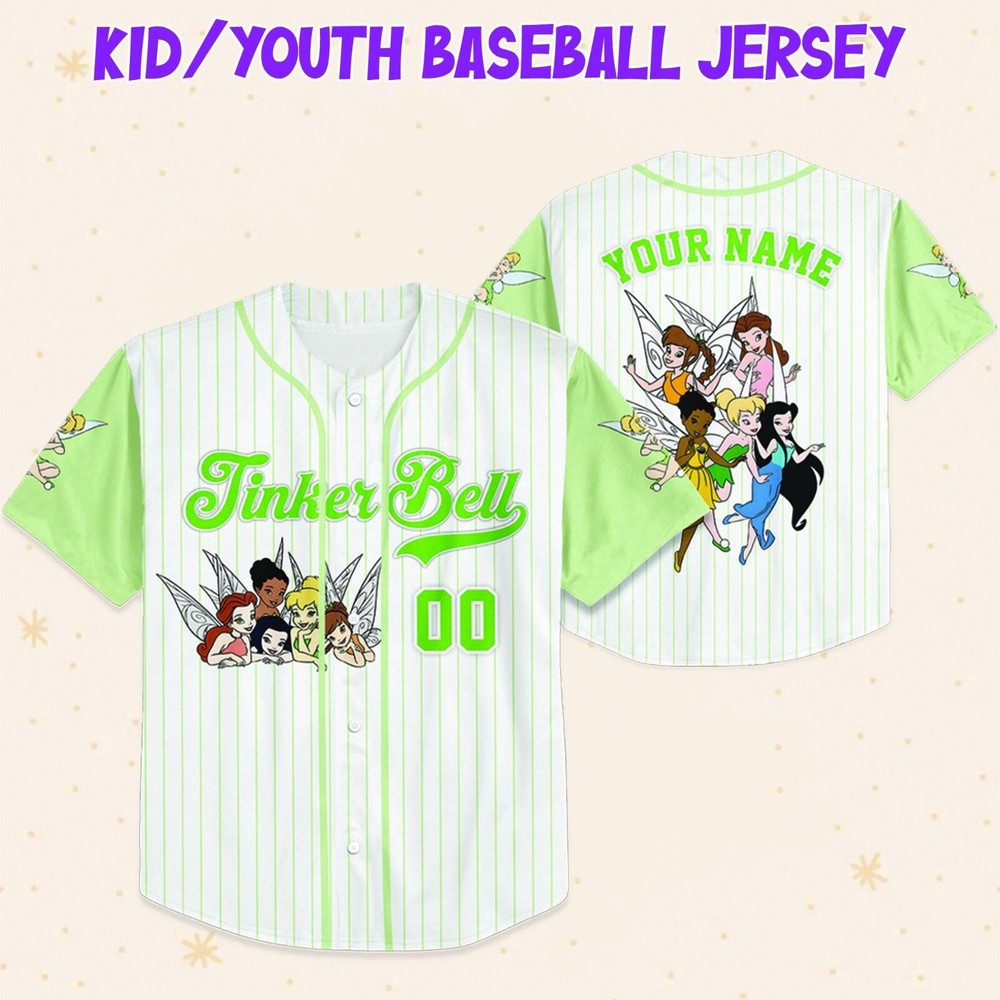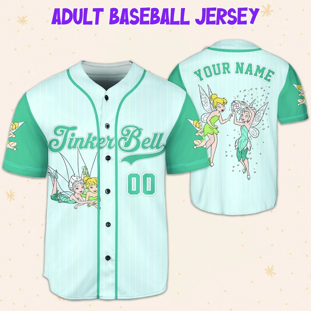 Custom Tinkerbell Disney Baseball Jersey for Kids & Adults - Disneyland Gift