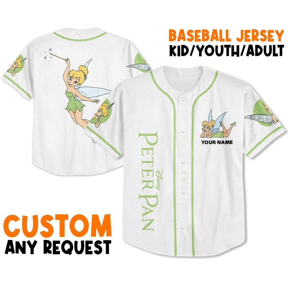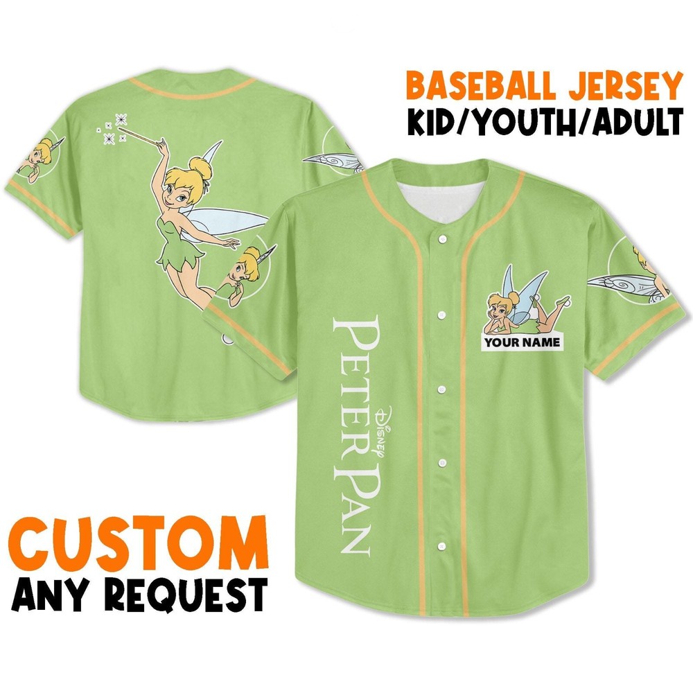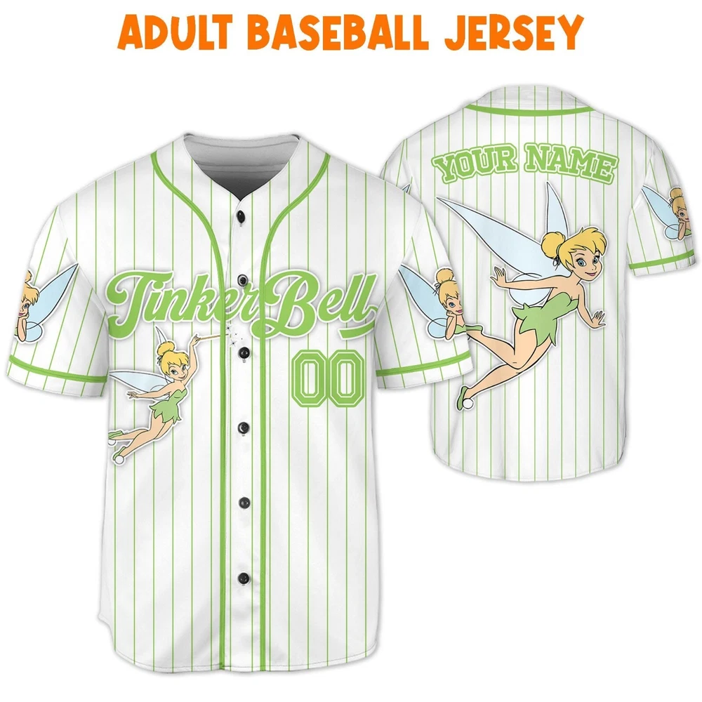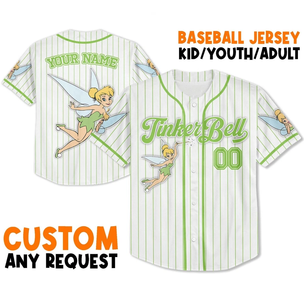 Custom Tinkerbell Disney Baseball Jersey for Kids & Adults - New Gift