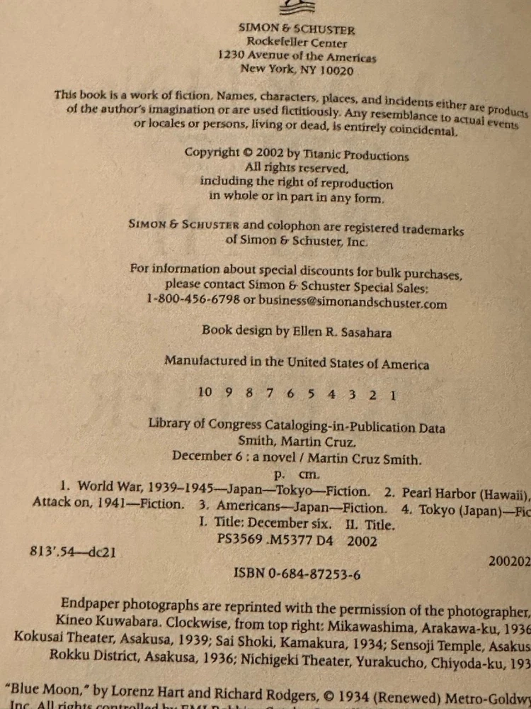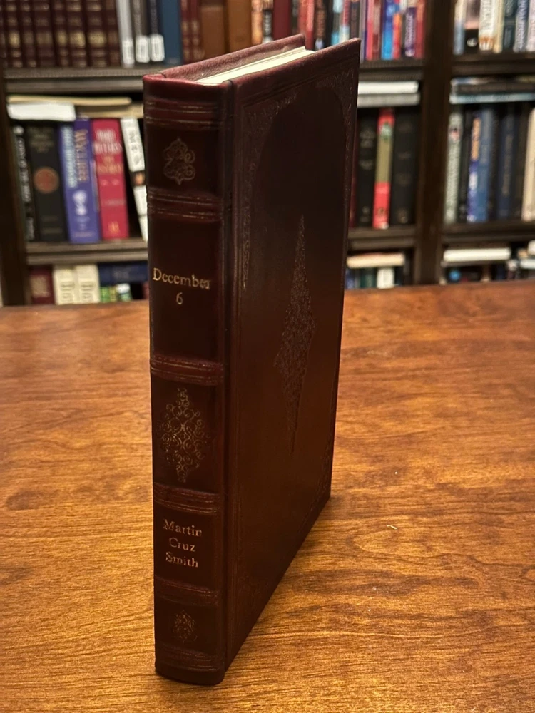 DECEMBER 6 by: Martin Cruz Smith VERY GOOD CONDITION - HARDCOVER (GENUINE LEATHER BOUND) - 1ST EDITION - 1ST PRINTING Item Pictured is the One You WILL Receive! No Markings or folds on pages About the Book: Title: December 6 Author: Martin Cruz Smith Publisher: Simon & Schuster Special At tributes : First Edition - First Printing - Leather Bound Format: Hardcover - No Dust Jacket - Genuine Leather Bound Copyright: 2002 Pages: 339 ISBN: 0-684-87253-6 Dimensions: 6.50 x 9.50 x 1.05 inches