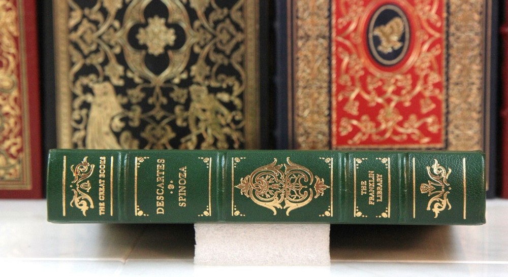 ***Copy of photos, personal formats, graphics, or text is prohibited . Ebay may drop listings with infractions. I review content regularly. 25th Anniversary Limited Edition Great Books of the Western World Descartes - Spinoza Author: Illustrations by Description: The Great Books of the Western World 25th Anniversary series was one of the elite collections every published by Franklin Library, comparing just under the lavish Oxford series for quality, titles, and beauty. There are a few more personal libraries being dumped on the market right now, but Great Books remains a highly sought after collection from Franklin Library and the market will tighten. --- One of the more sought after titles from the series. Condition : Leather is bright with only light sign of any shelf wear. Some marr to gilt page ends with a few marks. This Fine Leather Book Features: Top grade, gold embossed/ornamented leather Gilded page ends to protect against dust and moisture Decorative end papers Acid neutral archival paper to last generations