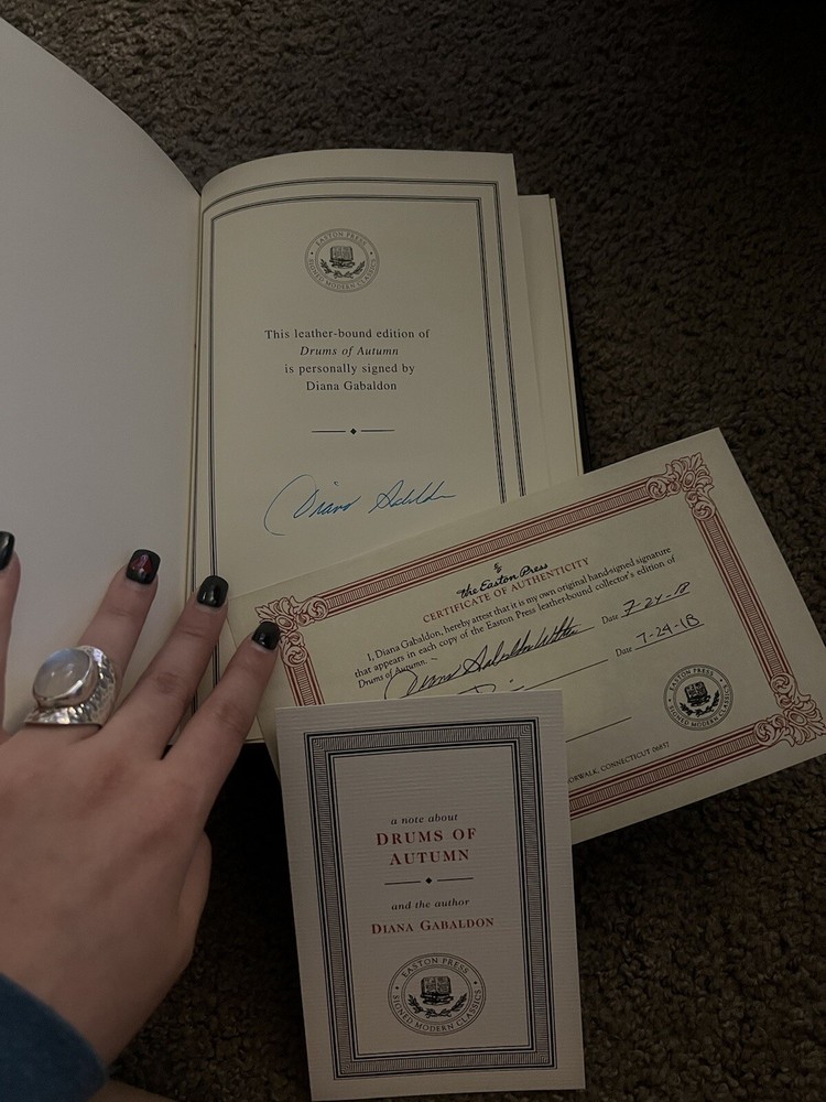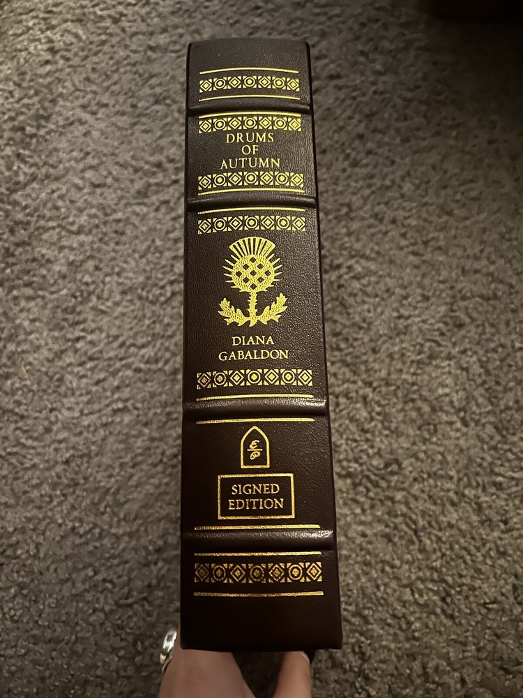 This limited edition copy of Diana Gabaldon's "Drums of Autumn" is a must-have for any fan of her Outlander series. The book is bound in beautiful leather and features the iconic cover art of Easton Press. Signed by author with certificate of authenticity. With its American origin and special attributes, this book is a rare find for collectors of literature and fiction. Whether you're an avid reader or a casual book lover, this signature edition of "Drums of Autumn" is sure to impress. Don't miss your chance to own a piece of Outlander history.