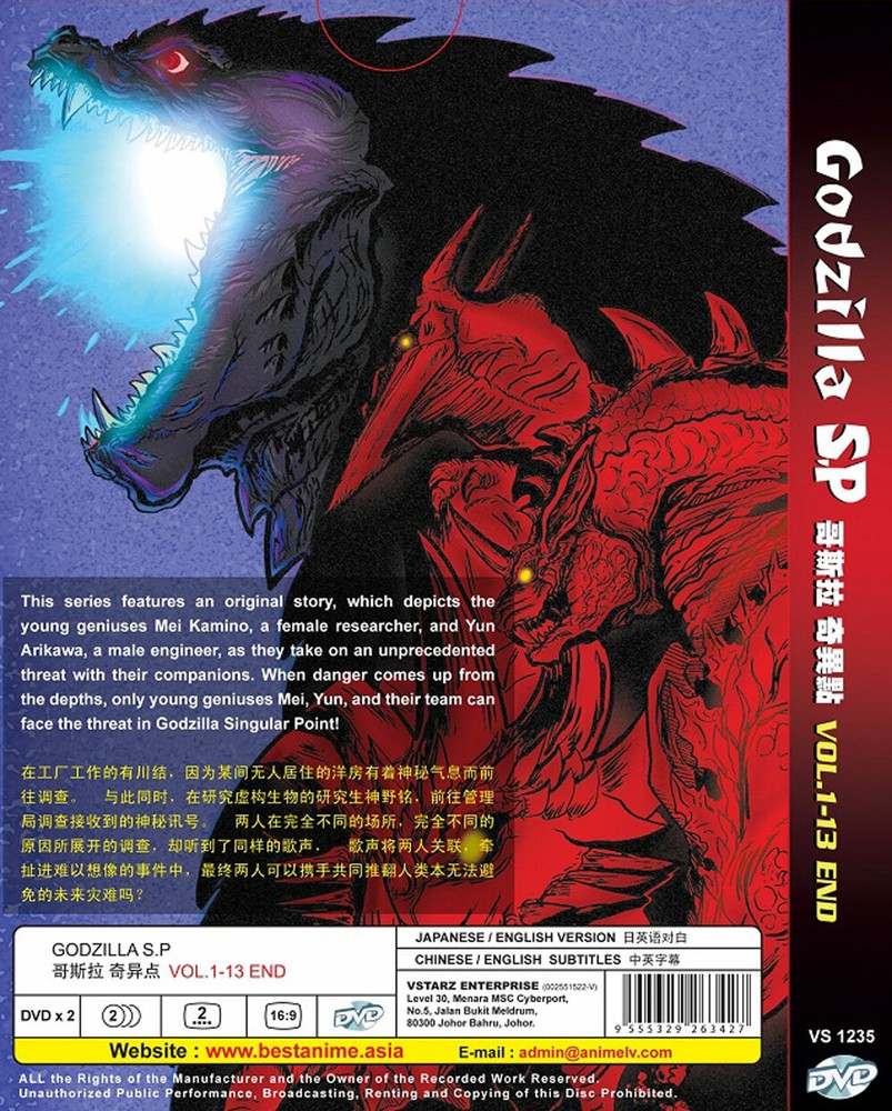 GODZILLA S.P - COMPLETE TV SERIES * ENGLISH DUBBED * Japanese Animation EXTRA 5 % WHEN YOU BUY 3 ITEMS ABOVE Language : Japanese / English Subtitle : Chinese / English Number Of Episode : 1 - 13 End Number Of Disc : 1 Format : Region All' Condition : NEW, Original Malaysia & Licensed Item Synopsis : This series features an original story, which depicts the young geniuses Mei Kamino, a female researcher, and Yun Arikawa, a male engineer, as they take on an unprecedented threat with their companions. When danger comes up from the depths, only young geniuses Mei, Yun, and their team can face the threat in Godzilla Singular Point! Payment * We Accept PAYPAL Payment Only Shipping & Handing * Free Register Track Your Shipment 10 to 21 Days Without Sat & Sun Working Days. * Item Will Be Shipped ONLY After Clearing Of Payment. All Order Will Process 2 Working Days ( NOT ICLUDED WEEKED OR PUBLIC HOLIDAY ) * After Received The Payment. We Only Ship To Confirm Address On " EBAY INVOICE ORDER DETAIL ". * All Items Will Be Bubble Wrapped For Better Protection. Return Policy * 30 Days Returnable. * Buyer Need Pay The Return Postage. * Items Must Be Returned In Perfect Original Condition, Buyer Responsible For Returns Shipping Cost. * Refunds Will Be Arranged Thru PAYPAL. Contact US * If You Have Any Questions Or Requests, Please Feel Free To Contact Us. We Will Do Our Best To Reply To You As Soon Possible. Thank You.