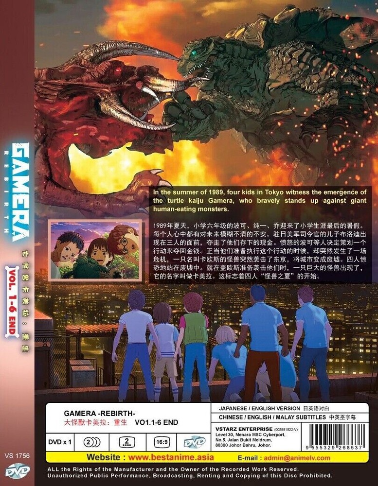 DVD Anime GAMERA: Rebirth Volume 1-6 END English Dubbed Number of Disc: 1 Disc (Episodes: 1~6 End) Language: Japanese / English Subtitle: English / Chinese Condition: NEW, Original & Licensed Item Disc Format: NTSC (16:9) Region Code: All Region Synopsis The plot of Gamera: Rebirth. Gamera: Rebirth follows four adventurous kids as they become unwittingly tied to Gamera and the sudden appearance of kaiju across the globe (mostly in Japan, though). Best friends Boco, Junichi, and Joe are facing off with their bully, an american kid named Brody. Item Condition: Brand New & Factory Seal and it is an Original and Licensed item. Payment Method: We accept payment using eBay manage payment only. Shipping Method: Handling time is 1-3 working days. Your goods will be shipped with a valid tracking number. All products are packed, and layered with bubble wrap to reduce damages during shipment delivery. Economy Shipping : The products will be shipped via SingPost from Malaysia. Estimate delivery is between 11 to 23 business days. Expedited shipping : Approx 9-11 working days depending on location Tracking will be provided. Return Method: If you have any problem with the order, do contact us via eBay message. We are glad to assist you and solving the problem as soon as possible. Items can be returned within 30 days in a good condition. Other: Import duties, taxes, and additional charges are not included in the item price or shipping charges. Please be aware this custom import duties and taxes are buyer's responsibility.