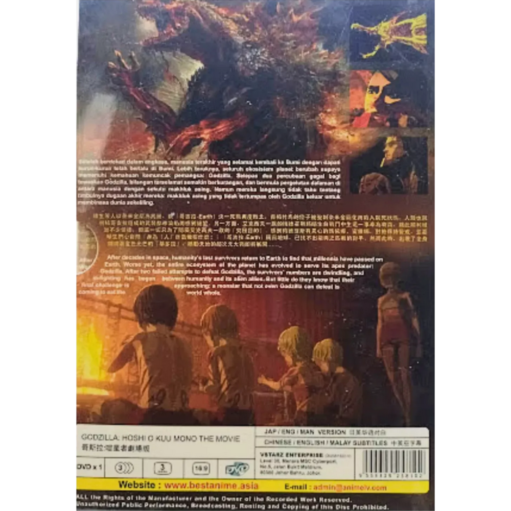 Created with Eselt - Responsive Templates for eBay Sellers Triangle Studio Give us a call Send us a message Created with Eselt - Responsive Templates for eBay Sellers Our Store Seller Profile Feedback About us Contact DVD Anime Godzilla The Movie 3: Hoshi O Kuu Mono (2019) English Dubbed Free Ship Language: Japanese/English/Mandarin Subtitle: English/Chinese/Malay Media Type: NTSC; Widescreen16:9, All Region Production: 2019 No. of Disc: 1 DVD Synopsis : A door opens, and a golden seal shatters a star. The early 21st century is upon us. After losing to Godzilla in the struggle for Earth, humanity has fled to the stars in quest of a new home. However, their quest is fruitless, forcing them and their extraterrestrial allies to return to Earth. However, in their absence, 20,000 years have elapsed, and the planet has completely changed. The plants and animals of the Earth now represent and assist Godzilla. With a height of 300 meters, the largest Godzilla ever to govern the planet Earth is a monster. Earth under Godzilla. Captain Haruo, the human protagonist, longs to vanquish Godzilla and reclaim the Earth for humanity. He meets the Houtua tribe, who are indigenous descendants of the human race, there. He finds the skeletal remains of Mecha-Godzilla, an anti-Godzilla weapon that, to everyone's amazement, is still functional in the form of self-generating nanometal, thanks to the guidance of the Houtua twins, Maina and Miana. The nanometals, which were removed from the Mecha-Godzilla corpse, have been progressively constructing "Mecha-Godzilla City," a potential weapon that might wipe out Godzilla Earth. A split opens up between the humans and the Bilusaludo, one of the extraterrestrial races that left Earth with the humans as part of their exodus, as the plan takes shape. Galu-gu, their leader, thinks that using superhuman abilities—specifically, the integration of nanometals—will help them beat Godzilla, but Haruo disagrees, believing that they must avoid turning into monsters themselves in the process. In the end, Haruo employs his strategy for taking down Godzilla Earth to demolish the Mecha-Godzilla metropolis and stop Galu-gu from being assimilated by nanometals. But Yuuko, his childhood companion, has become brain dead from being consumed by the nanometal integration. Once more, the human race is extinct. Metphies, the commander of the priestly alien race Exif, is amazed by Haruo's incredible survival and starts to gain support. Covertly, this result has been the Exif's "ultimate goal." Haruo starts to wonder what humans will do next, as Miana and Maina caution against Metphies. Mankind watches as King Ghidorah, clothed in a golden glow, descends upon the world, helpless against Godzilla Earth. As battle shifts to a higher plane, the earth trembles once more. What precisely is Godzilla? Does the human race have a chance? Does Haruo have an idea of what is ahead? Discover in the epilogue. Payment Currently, we accept payment through eBay - managed payment Shipping Ship by Economy Registered Airmail (Singpost) Handling time is 1-2 working days. Your goods will be shipped with valid tracking number. All products is packed , layered with bubble wrap to reduce damages during shipment delivery. Estimate delivery is between 10 to 16 business days. Returns If you have any problem with the order, do contact us via eBay message, we will be glad to assist you and resolve your problems as soon as possible. Items can be returned within 30 days in good condition. Other Note: Import duties, taxes and additional charges are not included in item price or shipping charges. Please be aware these custom import duties and taxes are buyer's responsibility. Links Our Store Seller Profile Feedback About us Contact More items Are you looking for something similar? See our other items! Show more items Contact Give us a call Send us a message Created with Eselt - Responsive Templates for eBay Sellers