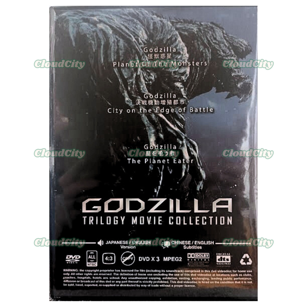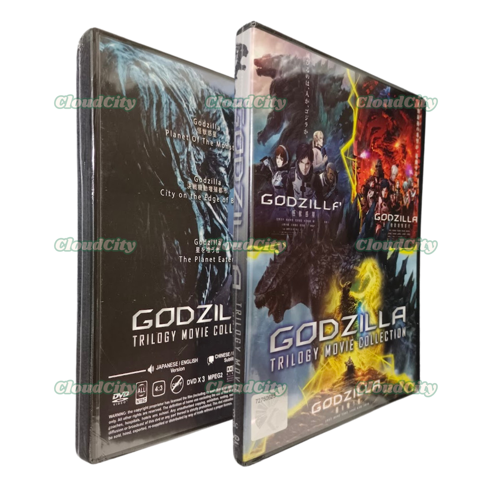 Anime DVD: GODZILLA *** Trilogy Movie Collection *** Language: Japanese/English Subtitle: English/Chinese Media Type: NTSC; Fullscreen 4:3, All Region DVD Edition Year: 2020 No. of Disc: 3 DVD 1. Godzilla: Planet of The Monsters 2. Godzilla: City on the Edge of Battle 3. Godzilla: The Planet Eater
