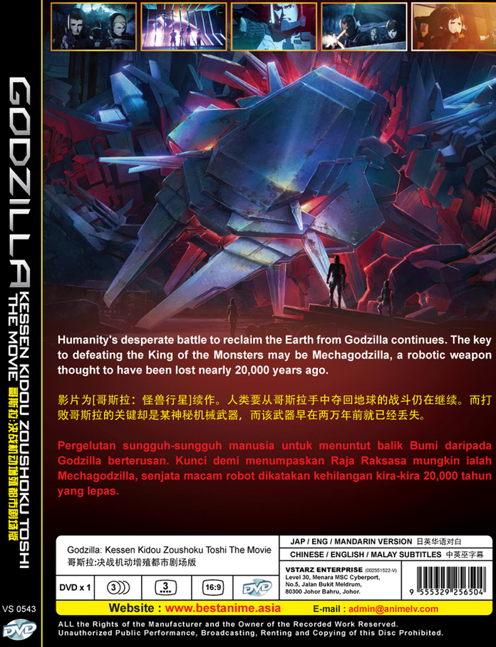 DVD Godzilla: Kessen Kidou Zoushoku Toshi The Movie (2018) English Dub Free Ship Product Description: Title: Godzilla Movie 2: Kessen Kidou Zoushoku Toshi / Godzilla: City on The Edge of Battle Number of Disc: DVD x 1pcs Audio Language: Japanese / English / Mandarin Subtitle: English / Chinese / Malay Disc Format: NTSC / PAL (16:9) Region Code: All Region (Able to play on DVD Players throughout the World) Condition: Authentic product, brand new from factory Synopsis: By the advent of the 21st century, much of humanity was dead, having been trampled over by a new master, Godzilla. A select few among mankind took to the stars in a spacefaring vessel called the Aratrum in search of "the promised land," the planet Tau-e that could sustain human life. But the migration plan fails, and the remnants of the human race decide to return to Earth. But the distortions in space-time and the distance traveled means that mankind is returning to a completely changed Earth some 20,000 years later. The returnees, led by hero Haruo, prepare to take the fight to Godzilla based on a strategy that has been 20 years in the making. Carried out with the help of two alien species, the Exif and the Bilusaludo, the humans succeed in defeating Godzilla in a costly battle to the death. But the victory is short-lived. Rising from the depths of the planet is a new breed of monster, dubbed "Godzilla Earth." Evolving for 20,000 years, the creature stands 300 meters high, weighs over 100,000 tons and wields such overwhelmingly destructive power that Haruo and company have no choice but to run for their lives. Coming to Haruo's rescue, however, is Miana, a member of an aboriginal tribe called the Houtua. They are the first humanoid people the returnees have encountered. Could they descend from humans? "Our tribal god was destroyed by Godzilla. All that we have left are these eggs. Anyone who has tried to fight or resist him has been drowned in fire," the tribespeople say to Haruo, who responds with: "This is our last hope of recovering our home." Meanwhile, Bilusaludo commander, Galu-gu is elated to discover that the Houtua tribe's arrowheads are made of a nanometal or a self-sustaining metal. It had been developed in the 21st century as an "anti-Godzilla" killer weapon deployed at their decisive battle fought at the foot of Mt. Fuji, but had been destroyed before it could be activated in the form of a "Mecha-Godzilla." The nanometal was its base substance, and proof that the manufacturing plant can still be used. _____________________________ We Only Sell Original/Genuine DVDs. All DVDs I'm selling are from Licensed Publisher in Malaysia. All our product come with original seal Authentication from Malaysia government and authorized by National Film Development Corporation Malaysia.