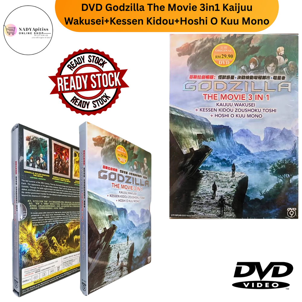 Godzilla The Movie 3-in-1 Collection | Kaijuu Wakusei / Kessen Kidou Zoushoku Toshi / Hoshi wo Kuu Mono | English Dubbed | All Region DVD π The King of Monsters Returns β Triple the Destruction in One Epic Collection! π Experience the complete Godzilla Anime Movie Trilogy in one action-packed DVD set! Featuring Kaijuu Wakusei (Planet of the Monsters) , Kessen Kidou Zoushoku Toshi (City on the Edge of Battle) , and Hoshi wo Kuu Mono (The Planet Eater) β this set delivers stunning visuals, post-apocalyptic battles, and the ultimate showdown of kaiju power. π Product Details: Titles Included: Godzilla: Planet of the Monsters (Kaijuu Wakusei) Godzilla: City on the Edge of Battle (Kessen Kidou Zoushoku Toshi) Godzilla: The Planet Eater (Hoshi wo Kuu Mono) Audio: English & Japanese (Dual Audio) Subtitles: English / Chinese / Malay Region Code: All Region / Region-Free (Plays Worldwide) Disc Format: NTSC Number of Discs: 1 DVD Condition: Brand New, Sealed Genre: Sci-Fi, Animation, Action π₯ A must-have for Godzilla fans, kaiju collectors, and anime sci-fi lovers! β‘ 3 explosive movies, 1 disc β ready for your next movie marathon!