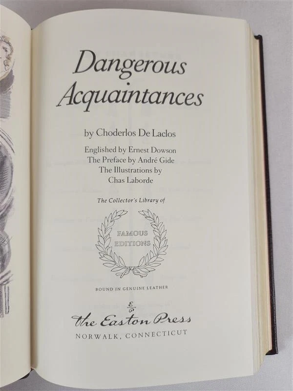 Title: Dangerous Acquaintances by Choderlos De Laclos EASTON PRESS *Famous Editions* Author: Choderlos De Laclos Illustrator: Chas Laborde Publisher: Easton Press Publication Year: 1986 Publisher's Location: Norwalk, Connecticut Format: Leather Bound Subject: Literature & Fiction Topic: Literature Special Attributes: Illustrated Language: English Country of Manufacture: United States Edition Description: The Collector's Library Of Famous Editions ... The Noble Lives Of The Noble Grecians And Romans Edition Number: ISBN : Pages: 387 Measurements: 6.50" x 9.50" Condition Grade: Used Condition Notes: The covers corners and edges have light wear. The gold gilt sides have scratches. The second page has a blank E.P. library plate. Clean text / images. Tight binding. Not a perfect copy but the spine looks nice for when its displayed on a shelf. Seller's SKU 14020033 *** FROM A SMOKE FREE ENVIRONMENT *** *** FOR EBAY OFFERS YOU MUST USE THE SHOPPING CART *** For Example, "Buy 3 Get 1 Free" ... Use the eBay shopping cart by clicking "Add To Cart" and eBay will add up your savings once you have the correct amount of items in your Shopping Cart and Checkout. THESE DEALS DO NOT WORK WITH BEST OFFERS *** Payment: All items are expected to be paid for within 4 days of purchase unless other arrangements have been made with me. Pickups … If agreed upon for item to be picked up in person, cash on pickup is the only payment accepted. Shipping: Generally everything ships same or next business day of payment being received. Occasionally something gets misplaced and takes a little longer to ship. You will be informed of the situation if this happens. In the very rare circumstance I oversell an item; your payment will be refunded in full. I sell on multiple marketplaces and sometimes inventory doesn’t update in time and I no longer have the item. I sincerely apologize ahead of time if this happens to you. Shipping Options: More shipping options/rates are available than the one listed on the main description page. Please click on the "Shipping and Payments" tab to view your other choices. Sometimes there are cheaper options available than the one listed first depending on your location. International Shipping: I ship all over the world for most items as long as I have a shipping service that goes there. Customs and Duties: Your country may charge you import fees/taxes. Buyer's are responsible for these fees. We do not cheat the fees. The item sold amount is the value listed on the customs form as merchandise. Returns: Returns are accepted on most items as long I have been notified within 30 days of the tracking showing delivery. Factory sealed new items must be returned factory sealed. Items that are listed with “Sold As Is” can’t be returned. Concert / Event Tickets can only be returned for a refund if the event is canceled permanently. No return will be accepted for rescheduling, a band cancels from the lineup, you changed your mind, girlfriend dumped you, etc. Refunds: Your payment will be refunded minus shipping unless I made a mistake with the transaction. For example, I sent you the wrong item. If I made the mistake your payment will be refunded in full. Storage Location (For Seller): Powered by SixBit's eCommerce Solution