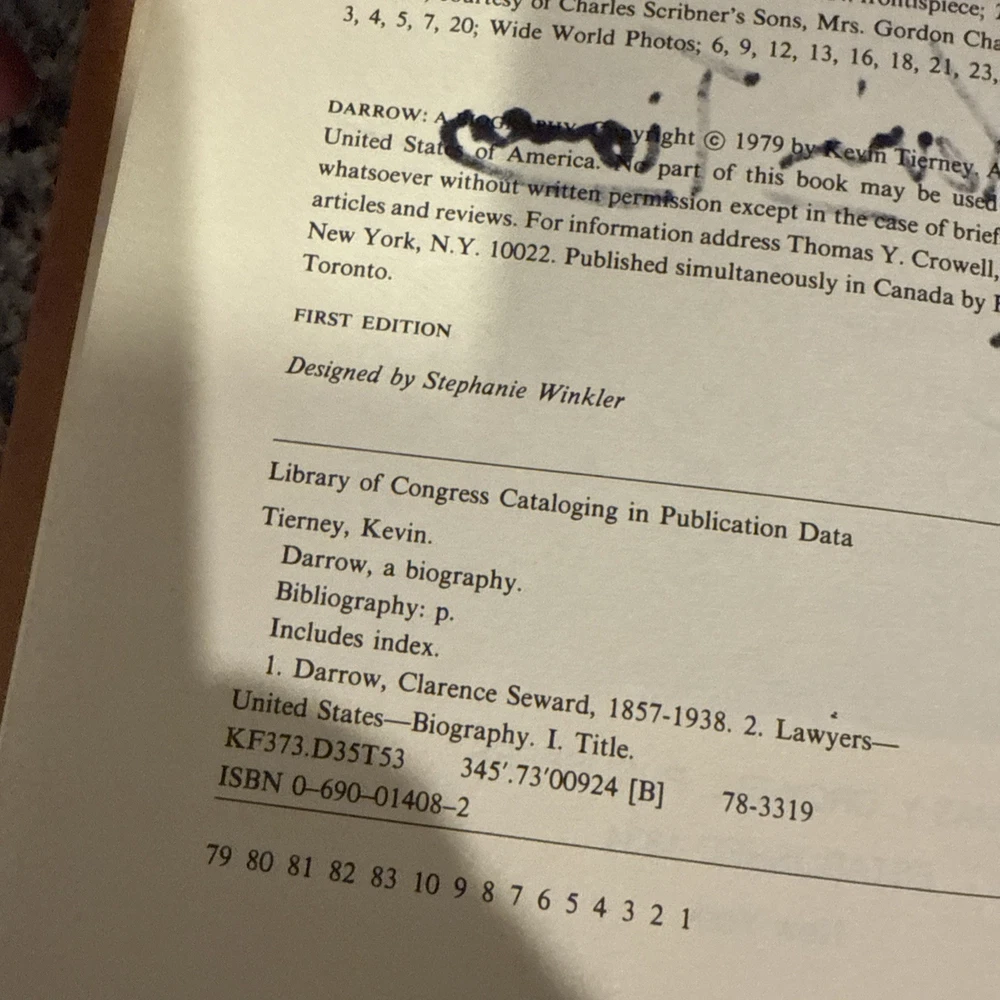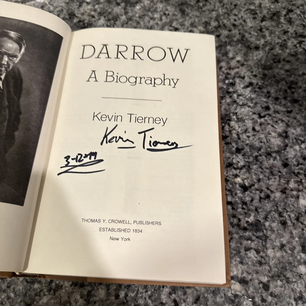 Darrow: A Biography by Kevin Tierney (1979) – Signed First Edition Hardcover – No Dust Jacket This listing is for a signed first edition hardcover of Darrow: A Biography by Kevin Tierney, published in 1979 by Crowell. Book Details: • Title: Darrow: A Biography • Author: Kevin Tierney • Publisher: Crowell • Year: 1979 • Edition: First Edition, First Printing • Format: Hardcover • Dust Jacket: Not included • Signed by the author on the title page Condition: • Cover: Very good overall, showing only light shelf wear. No major stains, tears, or damage. • Binding: Solid and tight. • Pages: Clean, crisp, and unmarked. No writing, highlighting, or dog-eared corners. Item comes from a pet and smoke free collector environment. See Pictures for details ….exactly what you will receive! Description: This is a well-preserved, signed first edition of Kevin Tierney’s comprehensive biography of legendary American lawyer Clarence Darrow, known for his passionate defense of civil liberties and involvement in historic cases like the Scopes Monkey Trial and the Leopold and Loeb case. Tierney’s work offers a nuanced, insightful portrait of one of the most controversial and brilliant legal minds in American history. A great addition for collectors of legal history, biographies, or signed first editions. Ships securely with tracking. Please message with any questions
