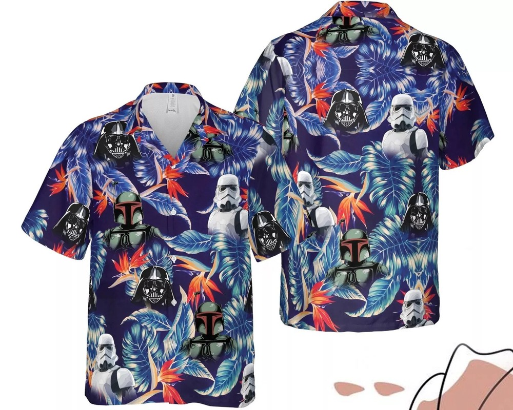 Darth Vader Stormtrooper Boba Fett Tropical Leaf Summer Hawaiian Shirt