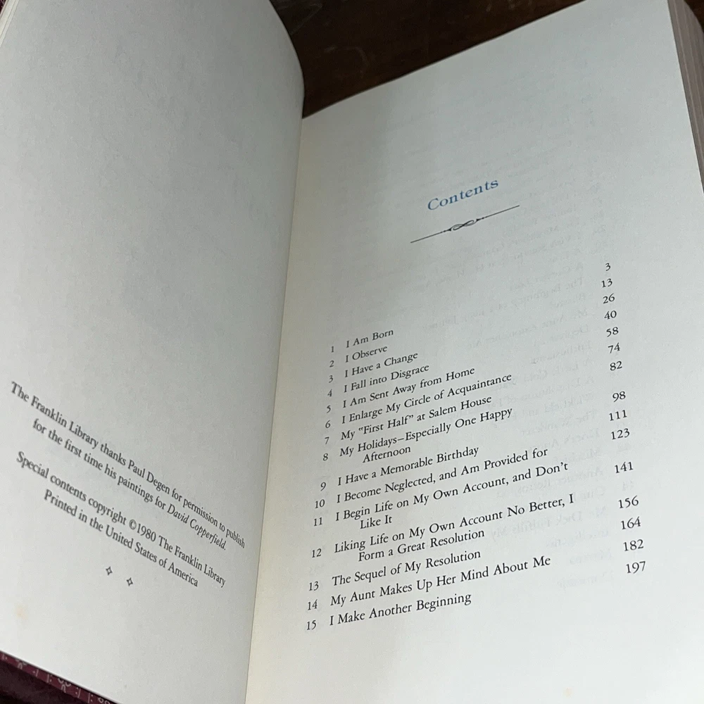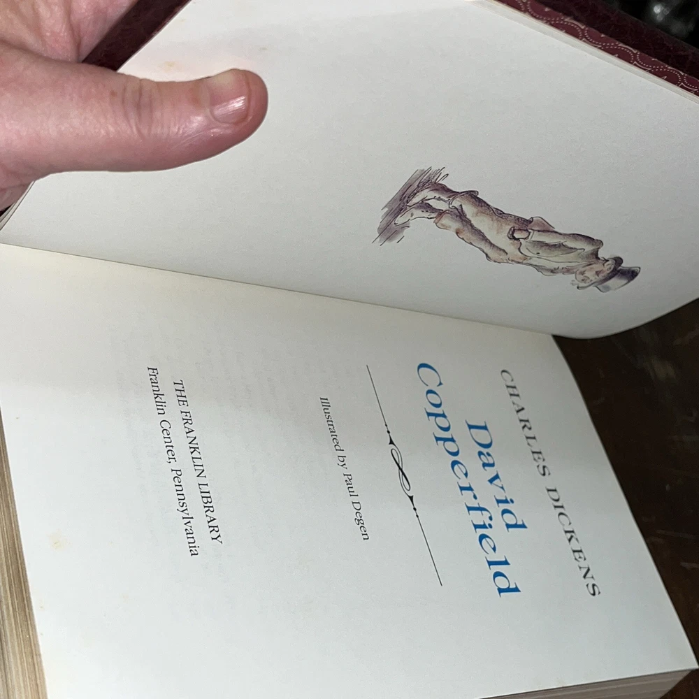 This is a rare and valuable hardcover leatherette edition of David Copperfield by Charles Dickens, published by Franklin Library in 1980. The book is beautifully illustrated and contains special attributes that make it a must-have for collectors of classic literature. The author, Charles Dickens, is renowned for his masterful storytelling and this edition of David Copperfield is no exception. It is an original printing and not a facsimile, making it an even more precious addition to any book collection. The book is written in English and covers topics related to classics and literature & fiction. See photos, near mint condition (1075)