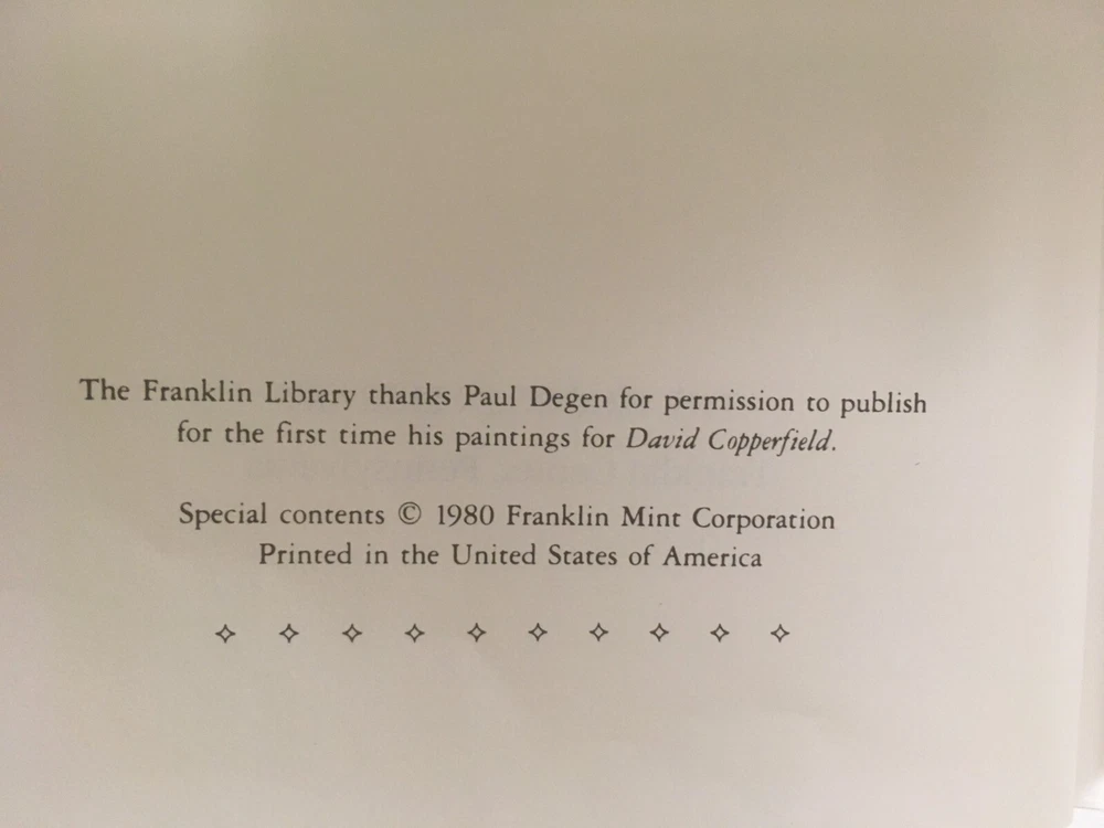 David Copperfield Franklin Library 1980 Quarter-Bound Leather Very good condition. Book in very good condition. Firm binding, vibrant colors (front and back covers), with clean pages. Pictures of actual item. Please check out pics for more details. Thanks We combine shipping on all items. Please feel free to email if you have any questions. Have fun and take care.