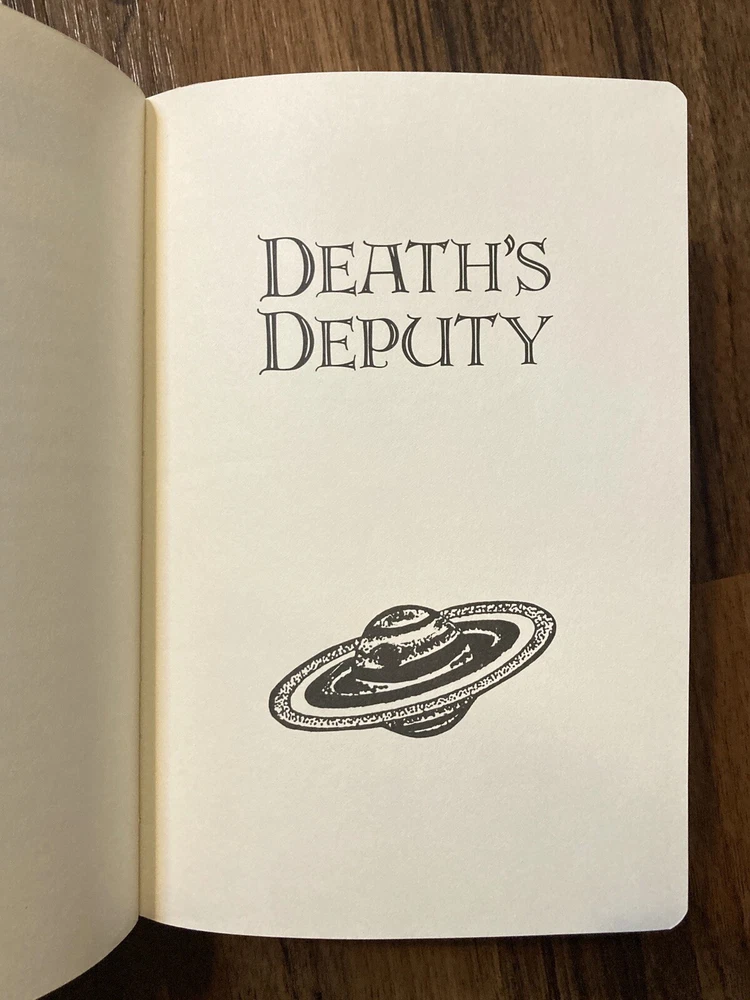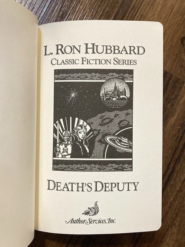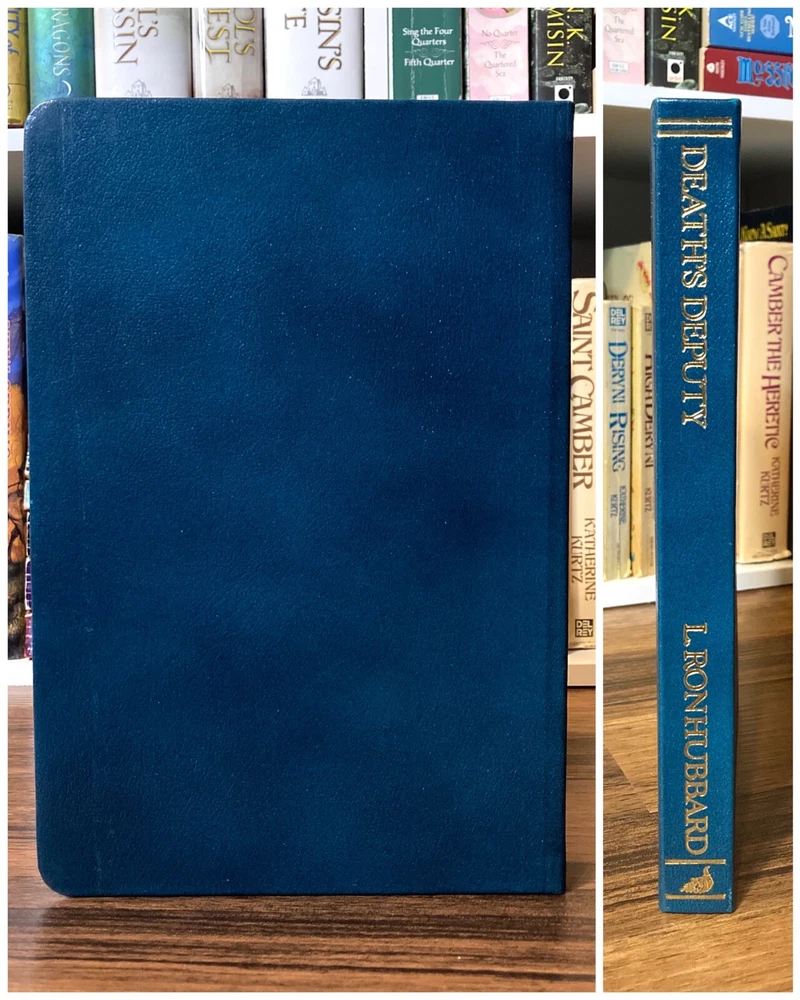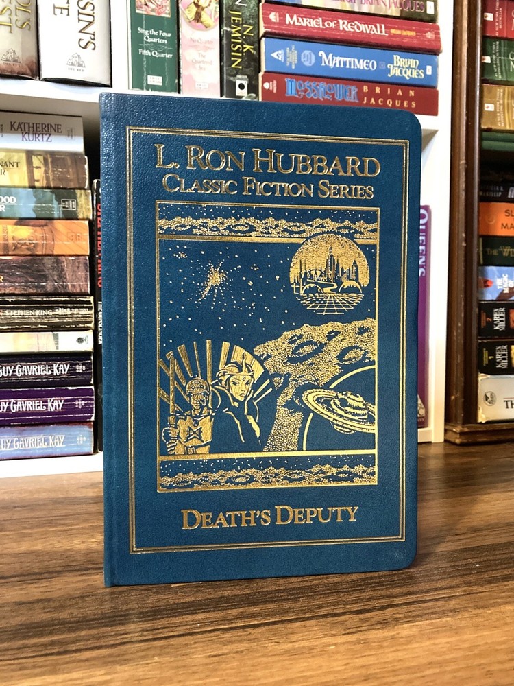 Deluxe edition (no print number, stated “First Book Edition”) of Death’s Deputy by L. Ron Hubbard (Author Services, Inc., 1996). Special Classic Fiction Series edition with blue leather and gilt design/lettering to front cover and spine. Gilt page edges. Decorative endpapers. A beautiful copy of this classic fantasy novel by the acclaimed science fiction / fantasy author, a book which was first published in 1948. This copy is in wonderful condition. Very slight bowing of boards and very faint shelf wear, but that’s about it. All pages are clean and unmarked. See photos for condition. Packaged with care and shipped via USPS Media Mail.