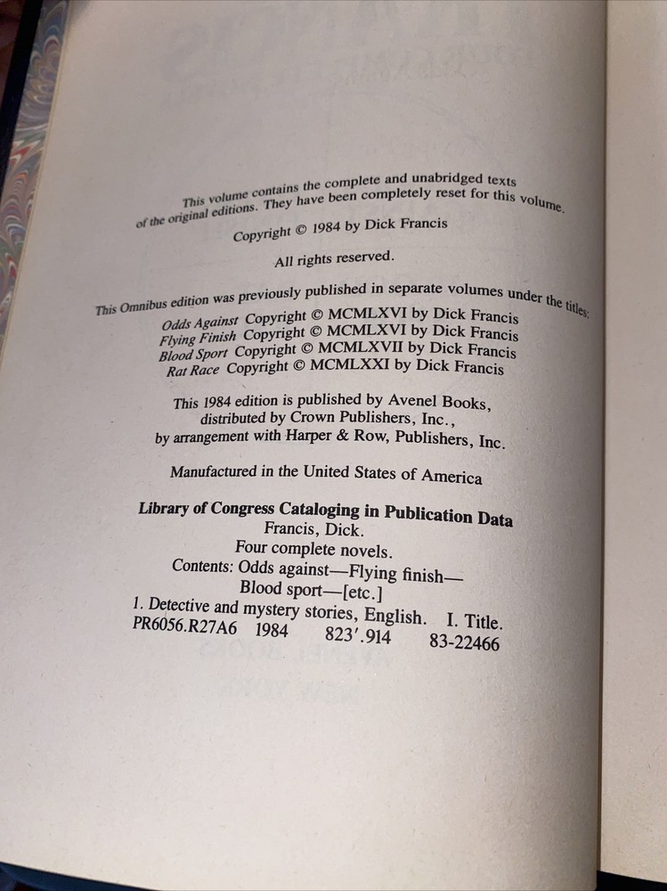 Dick Francis Four Novels,1984 edition/ MYSTERY/SUSPENSE/FOUL PLAY Leather Bound.