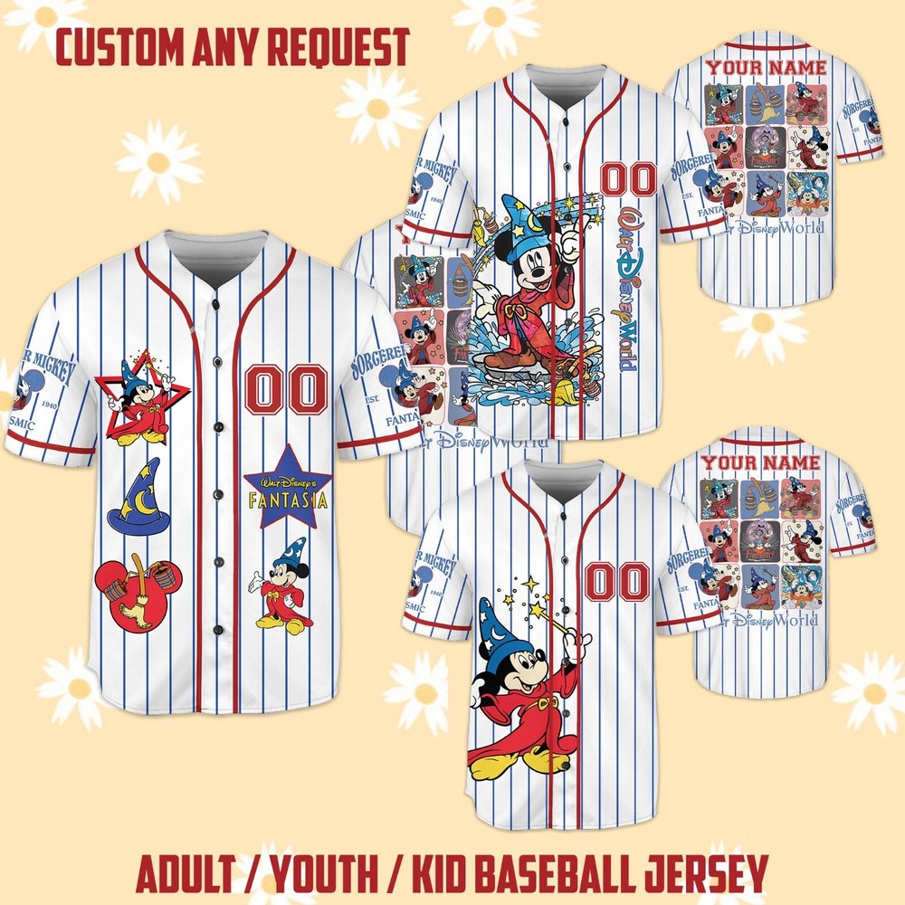 Disney Fantasia Sorcerer Mickey Baseball Jersey for Kids Men Women Fashion Gift