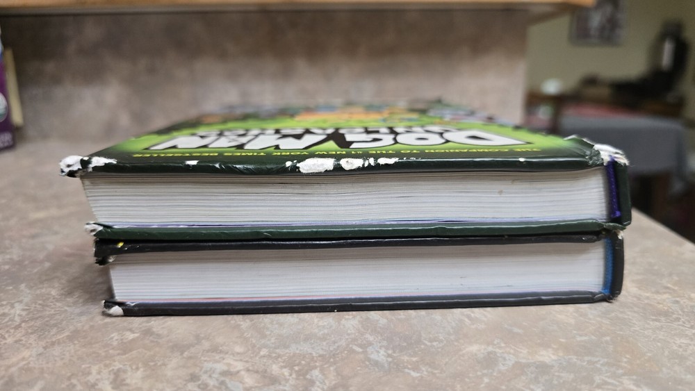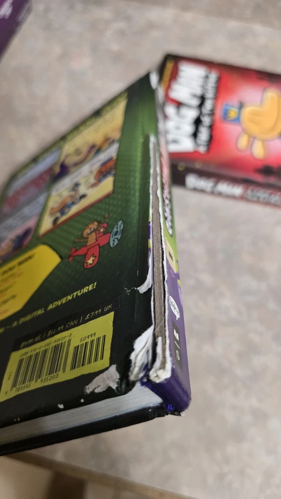 Lot of 2 Dog Man graphic novels. Dog Man Unleashed & Dog Man A Tale of Two Kitties. Both books have been well read and loved. There is writing inside of the books. The cover of Unleashed is damaged. These make for great reading copies for your kids. Please see all pictures to judge condition.