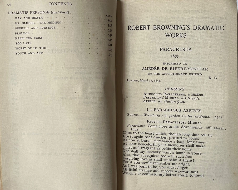Dramas and Dramatic Personae by Robert Browning, The New Universal Library - c. 1910 Hardback, Leather Bound Published by: George Routledge and Sons , London , United Kingdom Dimensions : Height 16cms x Width 10cms x Depth 3cms Pages : 600 pages Condition : PRE OWNED - in our opinion the book shows pre-owned wear nevertheless appears complete, in tact and generally in good condition, as shown. However, we are not experts. IF YOU WOULD LIKE FURTHER SPECIFIC IMAGES OF THE ITEM, OR HAVE ANY QUESTIONS, PLEASE MESSAGE ITEM IS OFFERED AS SHOWN