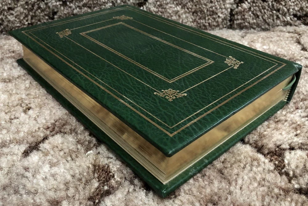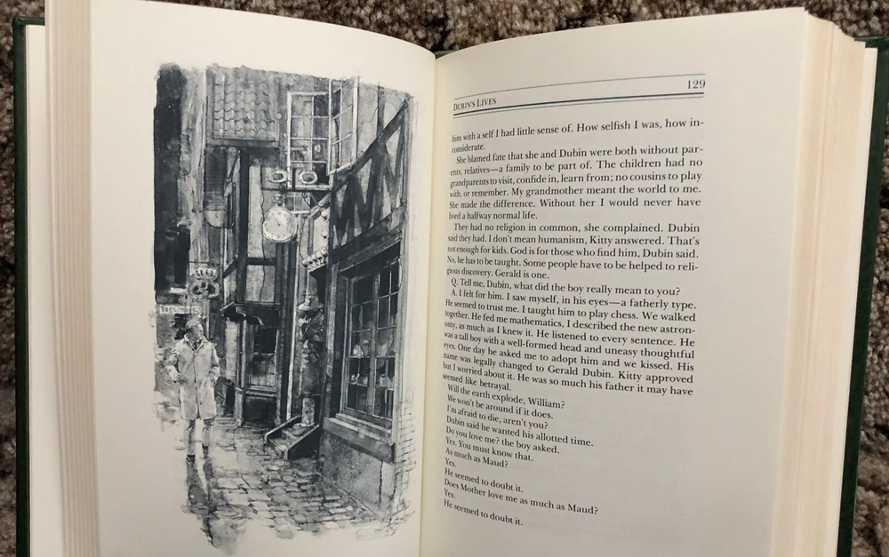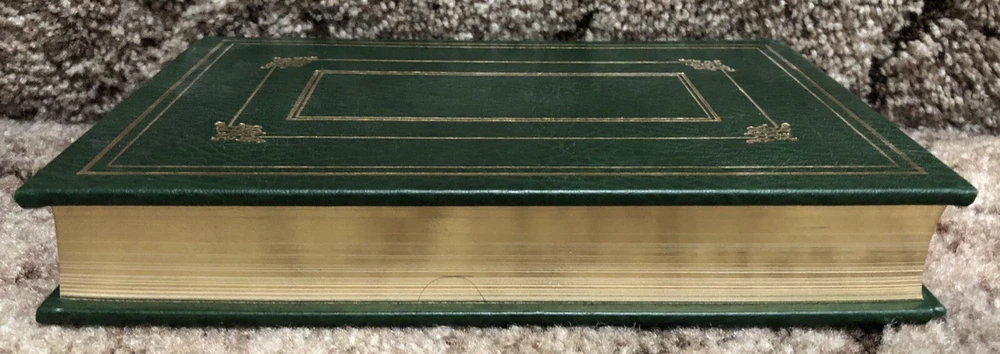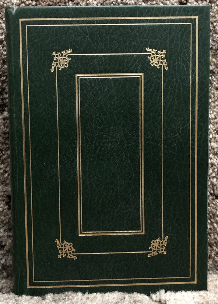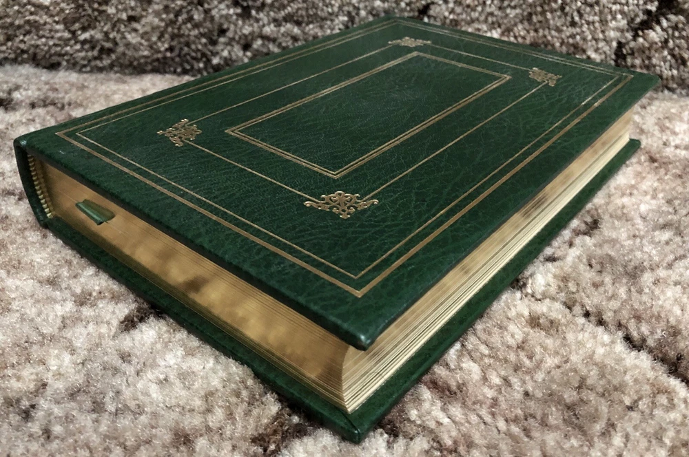Dubin's Lives . By Bernard Malamud. © 1979. The First Edition Society. The Franklin Library. Handsome green leather bound cover with classic hubbed spine and gilt lettering and design. Lovely green moire fabric lining on inside covers and opposing end papers. Green ribbon book marker attachment. 449 pages. 9-3/8" x 6-1/2" x 1-1/2". Front end paper quotation: This limited first edition of Dubin's Lives by Bernard Malamud has been privately printed exclusively for Members of The First Edition Society. A portion of the proceeds from the sale of this listing will go towards an annual scholarship for a worthy student at Milton-Stateline Seventh-day Adventist School in Milton-Freewater, Oregon.