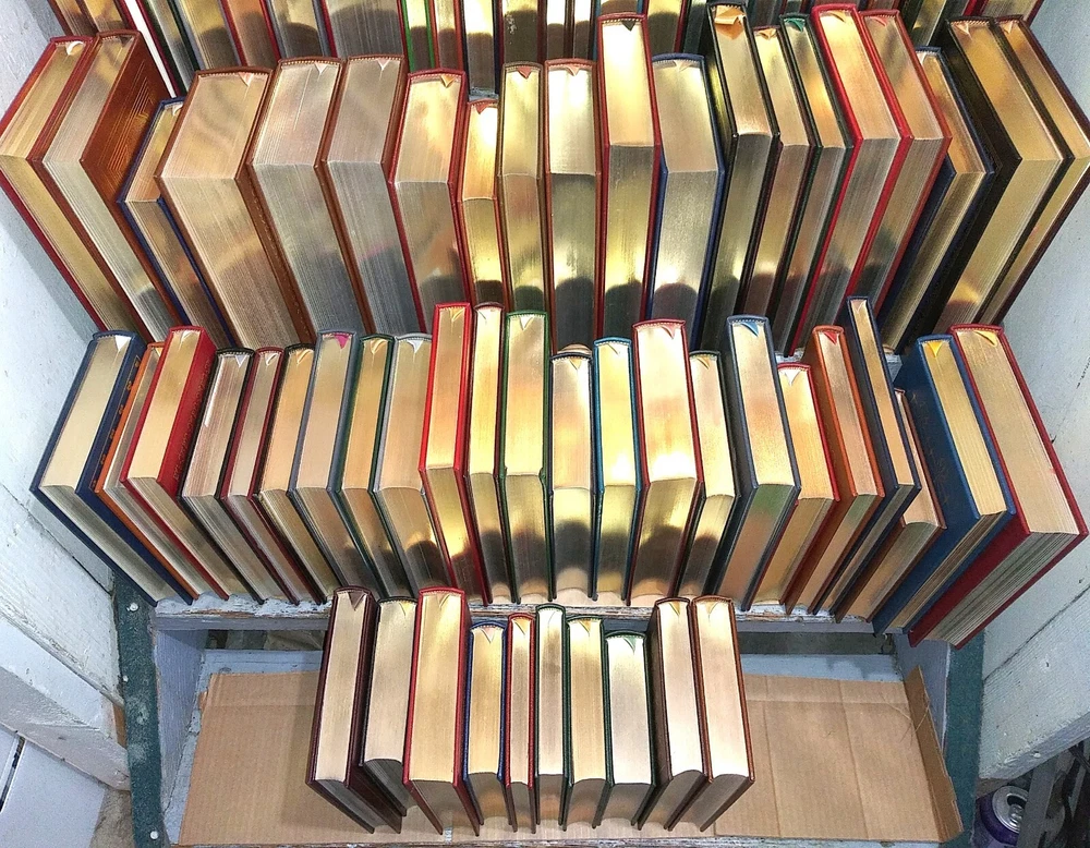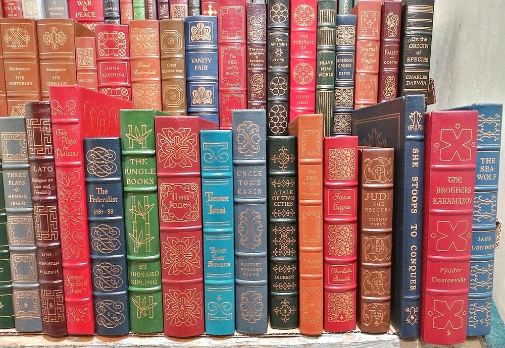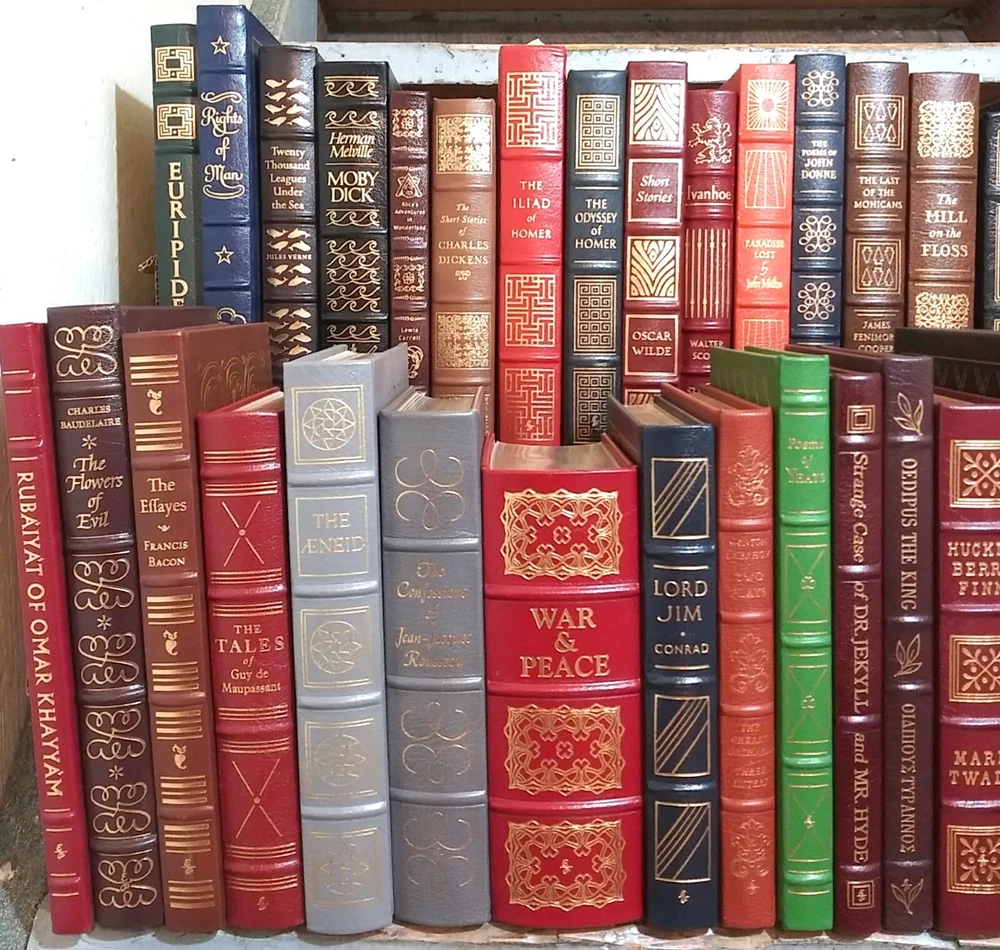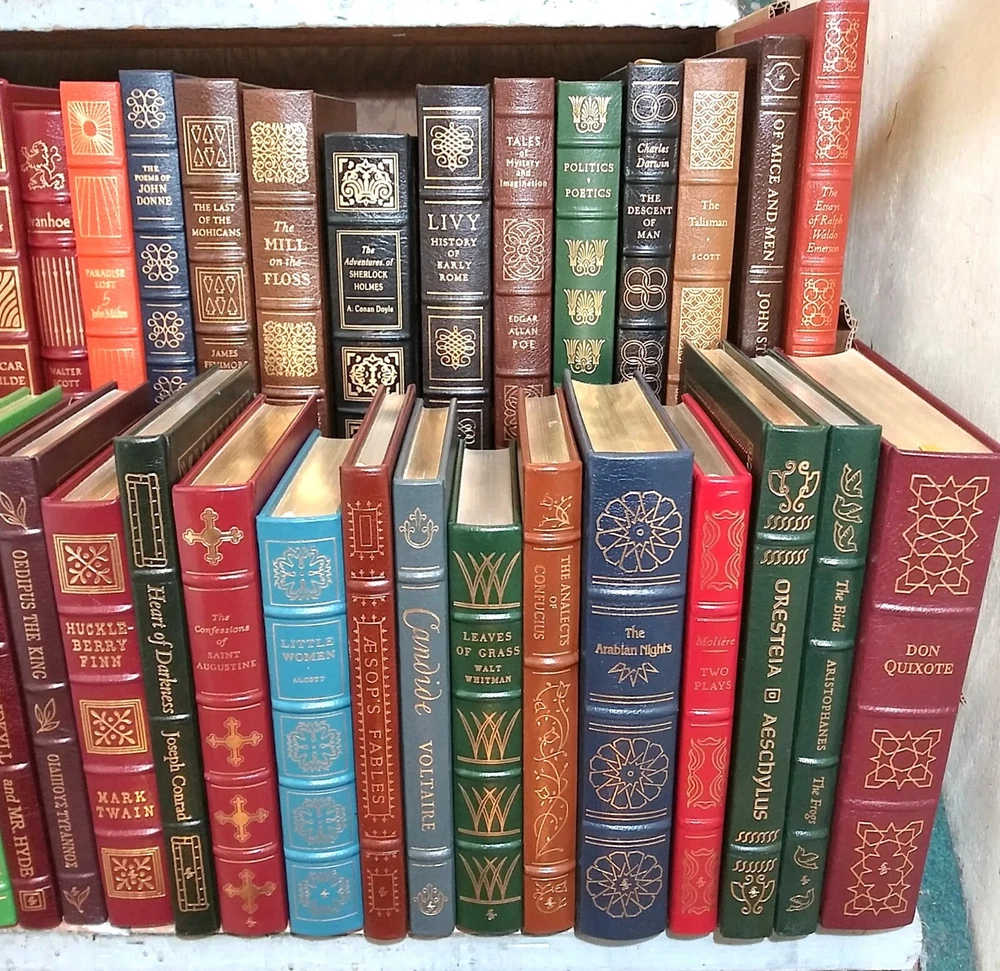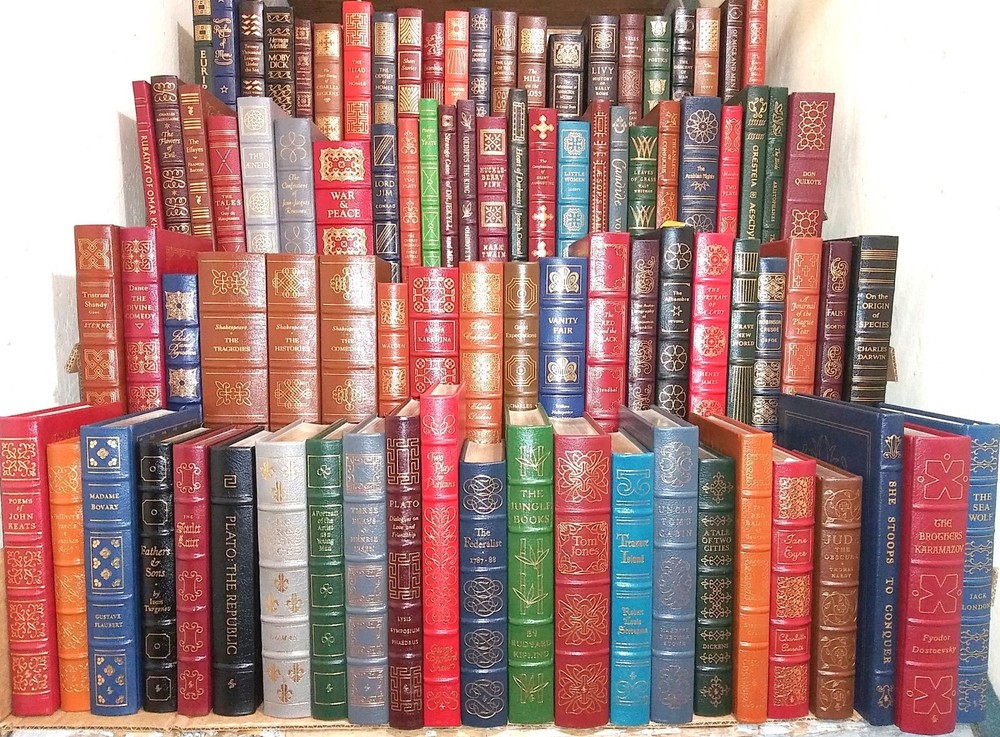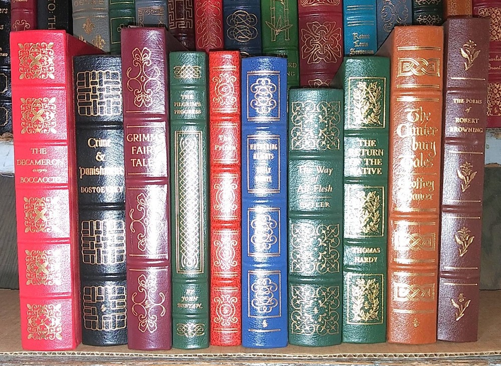 COMPLETE SET of the EASTON PRESS SERIES of the 100 GREATEST BOOKS EVER WRITTEN - 100 VOLUMES . Beautiful leather boards in rich colors, decorations in gold front and rear , gold titles, raised bands, g ilt edges, silk moire endpapers and attached ribbon markers and fine illustrations . A subscription-only series of fine books, focusing on classic literature and fiction, which had to be collected over 8 years during the late 70s and 80s . Titles include: • Anna Karenina • Brothers Grimm’s Fairy Tales • David Copperfield • Essays Ralph Waldo • Euripides • Fathers and Sons • Gulliver’s Travels • Huckleberry Finn • Leaves of Grass • Lord Jim • Oedipus the King • Oscar Wilde Short Stories • Strange Case of Dr Hyde • The Alhambra • The Arabian Nights • Shakespeare The Comedies • The Confessions Jean Jacques • The Decameron • The Descent of Man • The Divine Comedy • The Federalist Papers • Shakespeare The Histories • The Oresteia • The Prince • The Red and the Black • The Talisman • The Three Musketeers • The Way of All Flesh • Three Plays Henrik I bs en • Treasure Island • Twenty Thousand Leagues under the Sea • Uncle Tom’s Cabin • Vanity Fair • Walden • The Aeneid • Poems Yeats • The Republic • War and Peace • Pride and prejudice • The Mill and the Floss • A J ournal.of the Pla gu e Year • Two Plays for Puritans • A Brave New World • Heart of Darkness • St Augustine • The rights of man • Jude the Obscure • The Scarlet Letter • The Adventures of Sherlock Holmes • The E ss ayes of Ralph Waldo Emerson • The Brothers Karamazov • Portrait of a Lady • The Iliad of Homer • The Odyssey of Homer • Aesop's Fables • Politics Poetics • Poe's Tales of Mystery and Imagination • The Analects of Confucius • Two Plays Chekhov • Ivanhoe • Crime and Punishment • Collected Poems of John Donne • Jane Eyre • Robinson Crusoe • The Life and Opinions of Tristran Shandy • Candide • Tom Jones • The Histories • She Stoops to Conquer • Little Women • Faust • The Birds & The Frogs • The Return of the Native • The Autobiography of Benjamin Franklin • Origin of the Species • A Portrait of the Artist as a Young Man • The Call of the Wild • The Seawolf • Wuthering Heights • Jane Eyre • Madame Bovary • The Red Badge of Courage • Poems of Robert Browning • Ficc i ones • Rubaiyat of Omar Khayyam • Moby Dick • Paradise Lost • Great Exp e ctations • Charles Dickens The Short Stories • A Tale of Two Cities • The Flowers of Evil • Poems of John Keats • The Jungle Book • Livy The History of Early Rome • Dr. Zhivago • Native Son • The Trail • Pilgrim's Progress • The Great Gatsby • Ulysses • The Grapes of Wrath Condition is EX to NM: entire collection belonged to one guy who had a subscription and a c quired them all new; he never read them – the bindings are tight and most seem to have not been opened very wide ; there are maybe 10 -15 that have some minor scuffing to the gilt page edges . (Used, Vintage, Rare, Collectibles, Fine Binding, Leather Books, Literature, Fiction, Classics, Home Decor, 198 0’s, Memorabilia, Collectables) PLEASE READ BEFORE BIDDING: All items are very well-packed for shipment and always include tracking numbers. We are always happy to combine multiple items. Vinyl records are shipped with the vinyl out-of-sleeve to prevent seam splitting. INTERNATIONAL BIDDERS - WE SHIP WORLDWIDE - if the cost isn't set in the listing, please contact me prior to bidding so I can determine Airmail shipping rates for you. CANADA - your shipping costs are cheaper than most other countries - please contact me for rates. WE NEVER USE STOCK PHOTOS - all images are of actual items. WE USUALLY USE MULTIPLE IMAGES. We grade all items conservatively, and when grading record albums we follow the Goldmine Record Guide. Please see our other Ebay auctions for many used, odd, rare and collectible books and records, paper & ephemera, and more. Thank you! Questions and Offers welcomed.