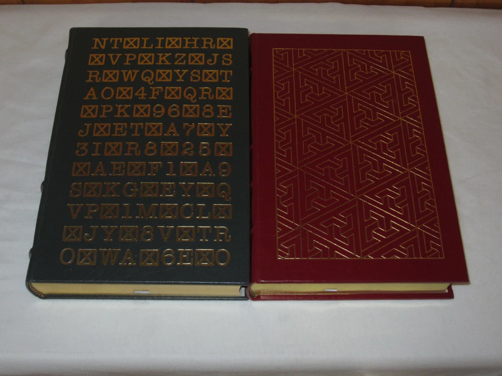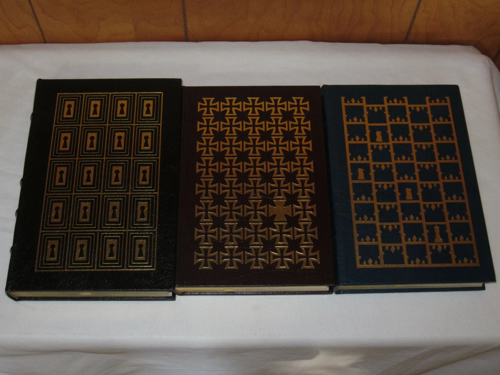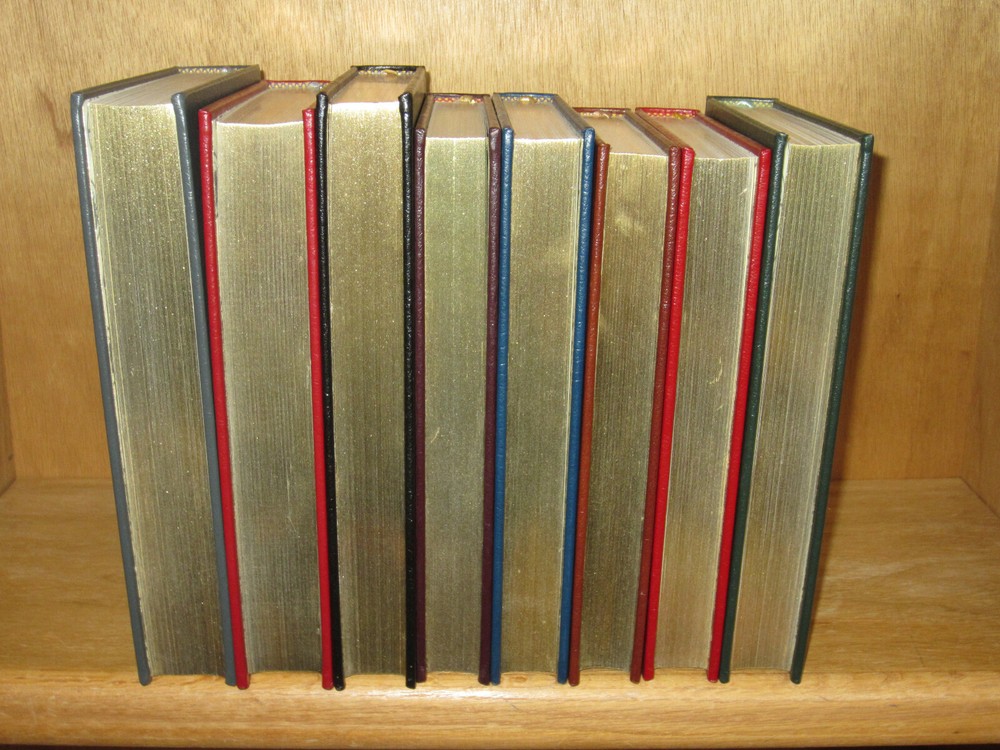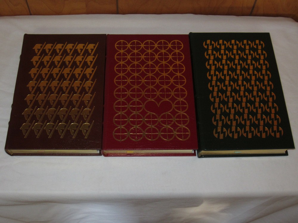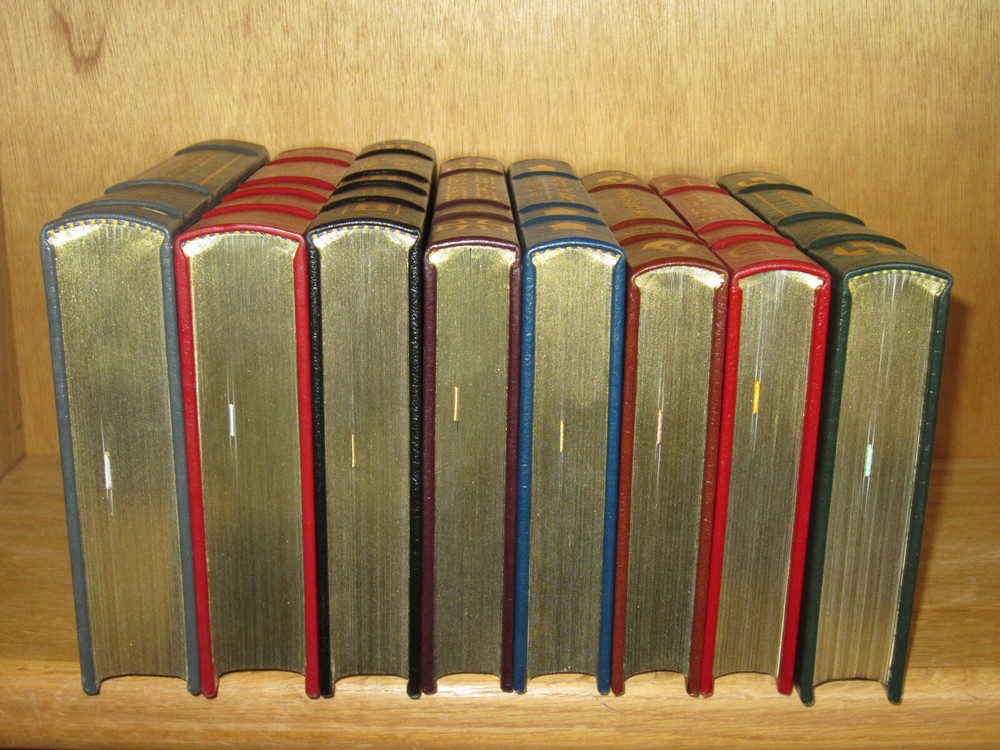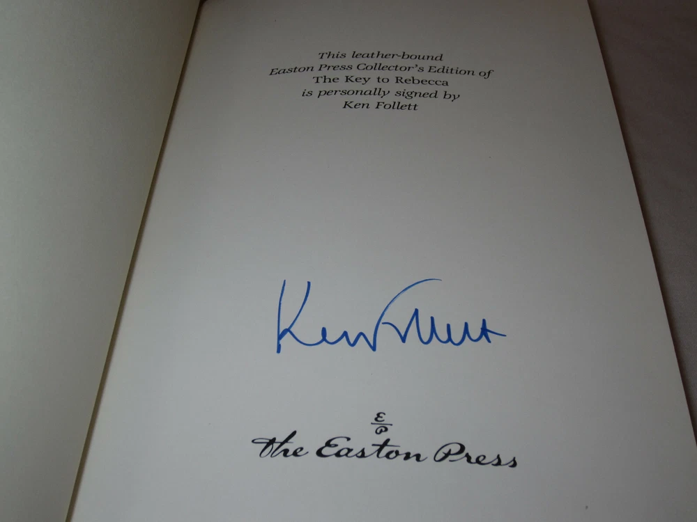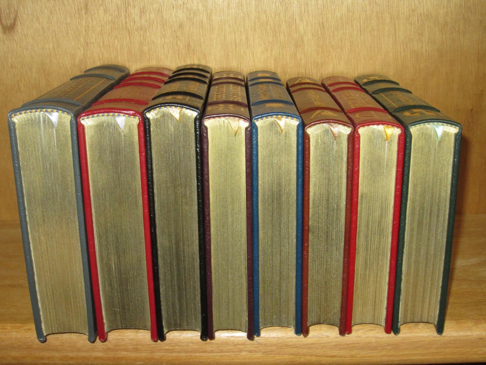 From the Easton Press Collection... The Ultimate Spy Series From Russia With Love by Ian Fleming The Key to Rebecca SIGNED by Ken Follet A Perfect Spy by John Le Carre The Parsifal Mosaic by Robert Ludlum The Eagle Has Landed by Jack Higgins Saving the Queen by William Buckley Jr. Where Eagles Dare by Alistair MacLean The Odessa File by Frederick Forsythe Complete Eight (8) Volume Matching Set Published by The Easton Press Bound in Premium Full Leather This set contains all of the classic Easton Press trimmings: Premium Leather Silk Moire Endleaves Distinctive Cover Design Hubbed Spine, Accented in Real 22KT Gold Satin Ribbon Page Marker Gilded Page Edges Long-lasting, High Quality Acid-neutral Paper Smyth-sewn Pages for Strength and Durability Beautiful Illustrations A very scarce set in any condition, this set is in Fine and Unread condition. The front in back covers are in terrific condition and the gilded page edges show hardly any wear (see pictures). Key to Rebecca is personally signed by Ken Follett. There are no markings, bookplates or other signs of prior ownership. This set is published by Easton Press and would be a beautiful addition to your Easton Press collection. Overall, this is a grade collector's set. It is very elusive in this superior condition, as only a limited number of them were ever published, so now is the time to act. Hopefully you can add this set to your collection and enjoy it in the years to come... Please Email Me With Any Questions You Might Have! Shipping Info: Buyer to Pay Shipping and Handling International Bidders Pay Extra Shipping Seller Not Responsible For Uninsured Items Lost or Damaged in Mail Good luck and happy bidding!