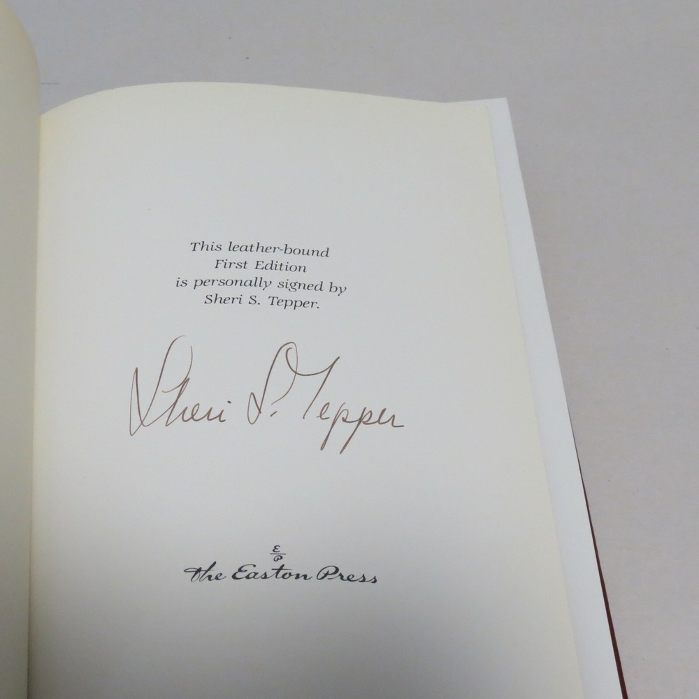 EASTON PRESS A PLAGUE OF ANGELS SHERI S. TEPPER SIGNED FIRST EDITION UNREAD UNMARKED LEATHER. EXCELLENT CONDITION. SPINE IS TIGHT, PAGES CLEAN. Book plate is affixed to front inside cover but is not signed, marked or embossed.