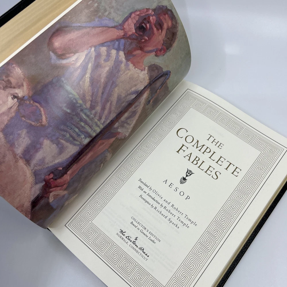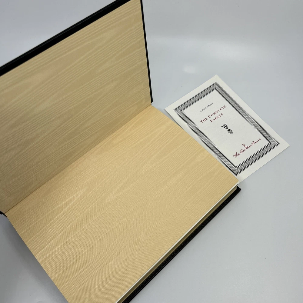 >>> GET IT NOW & ADD IT TO YOUR LIBRARY TODAY! <<< Leather-bound Easton Press collector's edition of The Complete Fables by Aesop (Greek Classics) Condition – Very Good/Excellent; no attached bookplate/no embossed seal/no signatures or markings ; slight shelf wear/marks/scratches/rubbing to page gilt; slight shelf wear/marks/rubbing/bumps to leather covers; original insert included; may have some dust from storage; please see all photos for details - photos are part of description; from an adult pet and smoke free household; owl not included Shipping – boxed USPS Media Mail or Priority Mail (selectable at checkout); no international shipping (please do not ask) Payment – within two days from the listing's end (Best Offer acceptance) unless prior arrangements have been made No Returns/Sold 'As Is' – please contact me if you have any additional questions/issues or with requests for additional pictures >>> GET IT NOW & ADD IT TO YOUR LIBRARY TODAY! <<< *The only true First Editions (1 st Editions) from Easton Press you can be 100% certain about are books with “Signed First Edition " gilt-stamped on the leather spine or “Signed First Edition " printed on the title page and/or on the signature page. It is impossible to tell if any other Easton Press book is a first edition or first printing. Please keep that in mind and if not sure ask sellers for photos proving their claim. **Easton Press does not provide the actual print date in their books. For "Year Printed" the copyright date is listed (oftentimes from the original Heritage Press editions, rights to which were sold to Easton Press), which may or may not indicate an accurate range for manufacture of the book. ***Please note that Easton Press’s term Collector’s Edition is not synonymous with Limited Edition (LE). The only true Limited Editions from Easton Press are copies hand-numbered on the limitation page (i.e. ‘Number 1 of 1200’ or ‘This edition is strictly limited to a quantity of 1200 copies of which this is number 1’). Please keep that in mind and if not sure ask sellers to prove their claim.