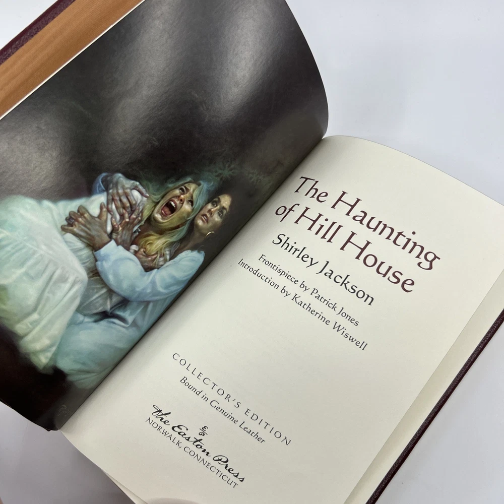 >>> GET IT NOW & ADD IT TO YOUR LIBRARY TODAY! <<< Leather-bound Easton Press collector's edition of The Haunting of the Hill House by Shirley Jackson - ONE VOLUME ONLY (Horror Classics) Condition – Very Good/Excellent; blank bookplate attached to front moire endsheet; no embossed seal/no signatures or markings ; slight shelf wear/marks/scratches/rubbing to page gilt; slight shelf wear/marks/scratches/rubbing/bumps to leather covers; may have some dust from storage; please see all photos for details - photos are part of description; from an adult only smoke & pet free household; owl not included Shipping – boxed USPS Media Mail or Priority Mail (selectable at checkout); no international shipping (please do not ask) Payment – within two days from the listing's end (Best Offer acceptance) unless prior arrangements have been made No Returns/Sold 'As Is' – please contact me if you have any additional questions/issues or with requests for additional pictures >>> GET IT NOW & ADD IT TO YOUR LIBRARY TODAY! <<< *The only true First Editions (1 st Editions) from Easton Press you can be 100% certain about are books with “Signed First Edition " gilt-stamped on the leather spine or “Signed First Edition " printed on the title page and/or on the signature page. It is impossible to tell if any other Easton Press book is a first edition or first printing. Please keep that in mind and if not sure ask sellers for photos proving their claim. **Easton Press does not provide the actual print date in their books. For "Year Printed" the copyright date is listed (oftentimes from the original Heritage Press editions, rights to which were sold to Easton Press), which may or may not indicate an accurate range for manufacture of the book. ***Please note that Easton Press’s term Collector’s Edition is not synonymous with Limited Edition (LE). The only true Limited Editions from Easton Press are copies hand-numbered on the limitation page (i.e. ‘Number 1 of 1200’ or ‘This edition is strictly limited to a quantity of 1200 copies of which this is number 1’). Please keep that in mind and if not sure ask sellers to prove their claim.
