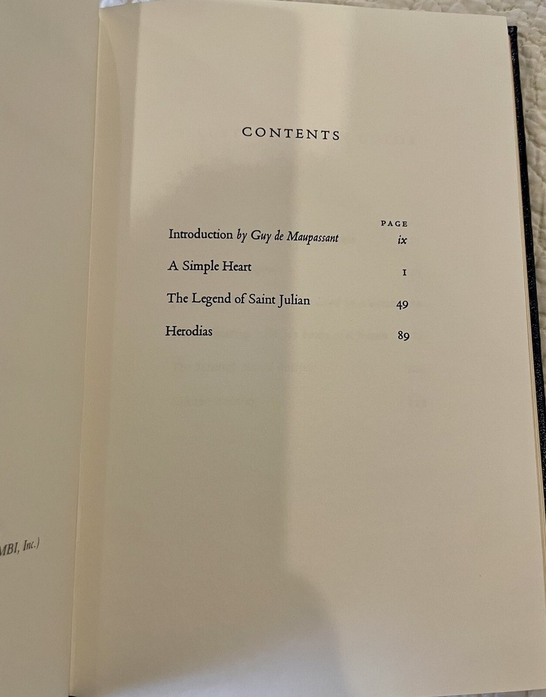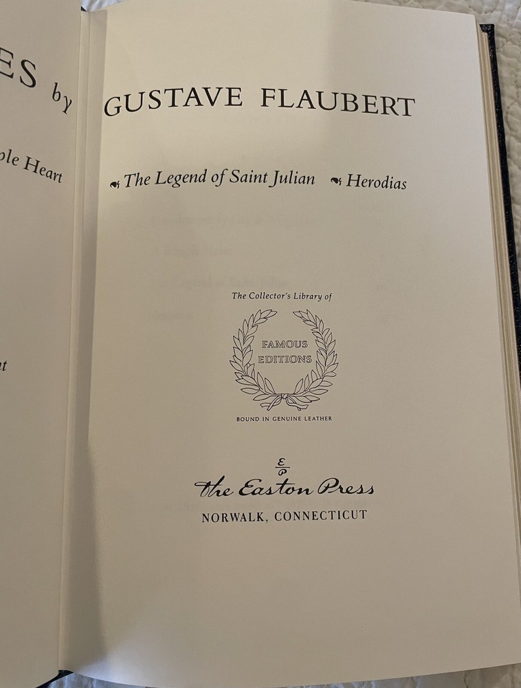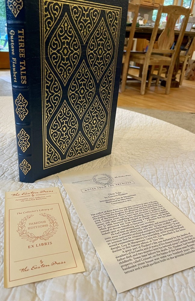 Three Tales by Gustave Flaubert, Easton a press Famous Editions, bound in genuine leather. Includes a Simple Heart, the Legend of St. Julian and Herodias. Like new condition with blank book plate and ...