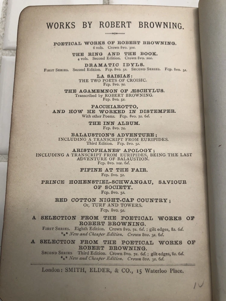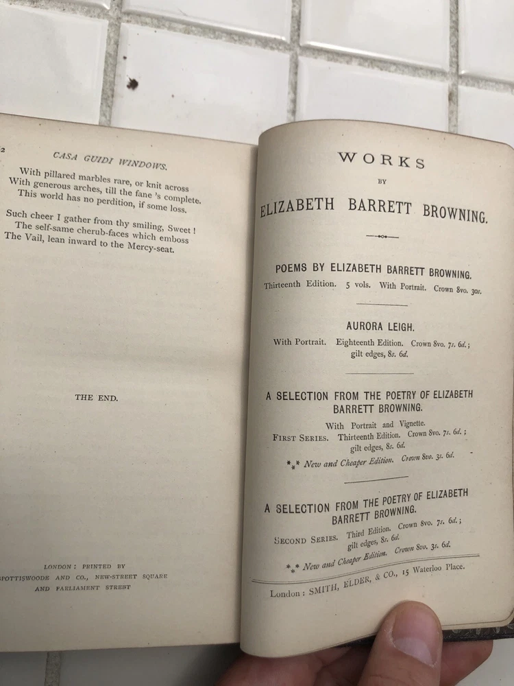 This vintage 1884 edition of Elizabeth Barrett Browning’s poetry is a charming find! The signing on the inside cover adds a sweet personal touch from 1885—perfect as a Valentine’s gift of its time. Though the binding has a tear, the pages remain in great condition, preserving Browning’s beautiful words. A lovely collector’s piece for poetry lovers! Be sure to check the photos for details.