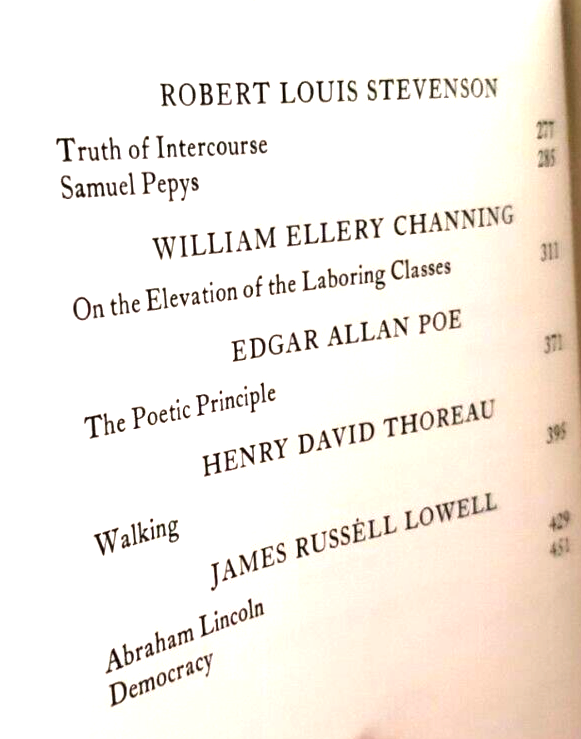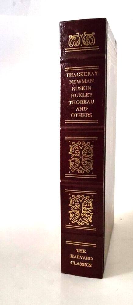 ENGLISH AND AMERICAN ESSAYS Poe, Thoreau, Ruskin & More ENGLISH AND AMERICAN ESSAYS, With works by Poe, Thoreau, Ruskin, Huxley, Stevenson and others ..... .. Published by Grolier in 1980......From the Harvard Classics .......470 pages ... DESCRIPTION - The book is bound in a dark red bonded leather cover, with raised bands. The pages are tipped in gold, and the book has a ribbon page marker........Mercy!!!!... The book measures 8 3/4 high, 6 inches across the front… ….. CONDITION - The big fella is overall very good condition........ The pages are good, with a little wear on the edges.. . ......The cover is solid, with some wear and use .. ..... This is a good, solid used book......And it looks mighty purty a-settin' on the shelf - great for readin' and display.....I'm bettin' that you'll be pleased with it .. ... PAYMENT AND SHIPPIN ' - 'Course the thrilled winner is gonna hafta pay $4.95 for postage and handlin'.........Multiple purchases save on shippin' ... ...Now while you're here, why don't you give my other auctions a look-see...Why, I 'spect I got a wagon load of mighty good books over yonder in my Book Barn... Thanks a heap....!! - - - ol' arkee