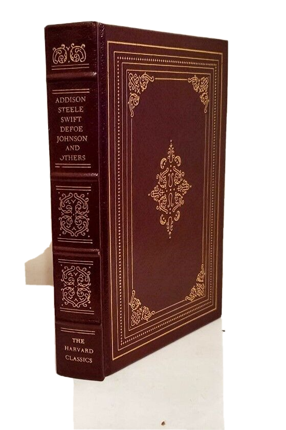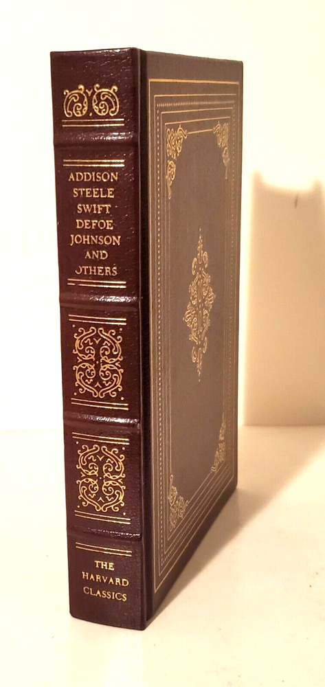 ENGLISH ESSAYS Swift, Defoe, Shelley ENGLISH ESSAYS ......Includin' works by Swift, Coleridge, Lamb, Defoe, Shelley and others …… …….Published by the Grolier in 1980........From the Harvard Classics......401 pages... DESCRIPTION - This book is bound with a bonded leather cover, with gold letterin' on spine and cover, and marbled endpapers...The pages are tipped in gold - and - the book has a satin ribbon page marker...Mercy!!!! ...T he book measures 8 3/4 high, 6 inches across the front…… . CONDITION - The big fella is in good condition....... The pages are good, with some worn areas on the top edges……The cover is solid, with some wear and use, and the spine has a lean to it, which oughta go away when the book is placed on the shelf with other books............This is a good, solid used book.......And it looks real purty a-settin' on the shelf – great for display and readin’..…..I think you will be pleased with it..... PAYMENT AND SHIPPIN ' - 'Course the thrilled winner is gonna hafta pay $4.95 for postage and handlin'.........Multiple purchases save on shippin'... ************************************ Now while you're here, why don't you give my other auctions a look-see...Why, I 'spect I got a wagon load of mighty good books over yonder in my Book Barn..... Thanks a heap....!!! - - - ol' arkee