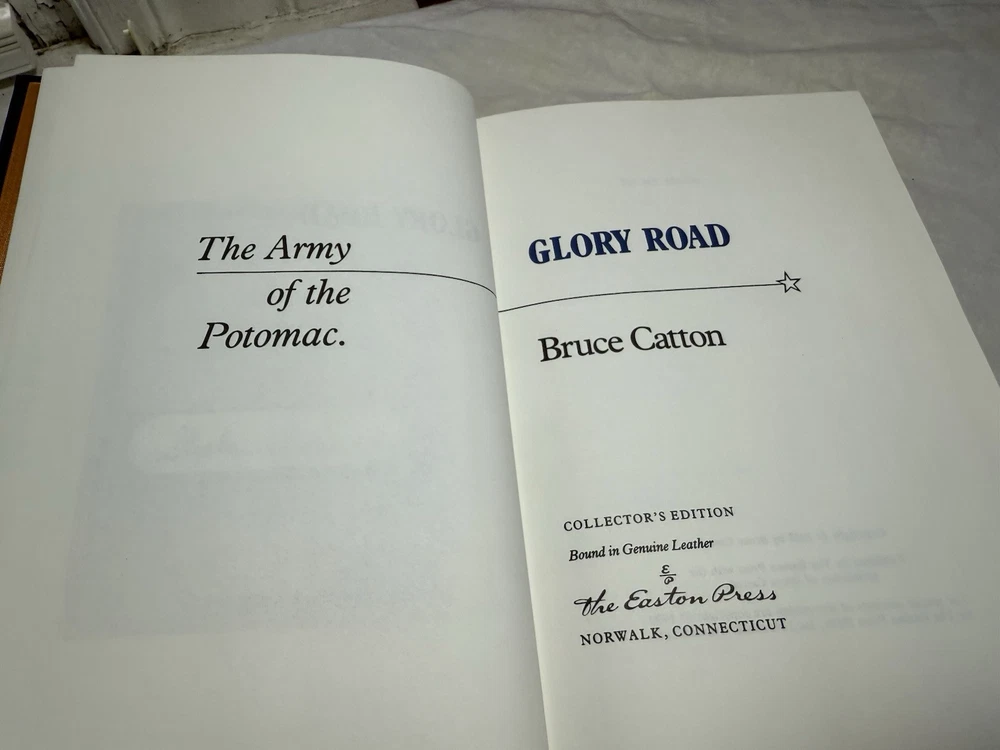 This rare find is a must-have for any military enthusiast or collector. The book, titled "Glory Road" and part of the Army Potomac Series, is bound in beautiful leather and published by Easton Press. The pages within detail the adventures and challenges of military life, making it a fascinating read for anyone interested in the topic. Whether you're looking to add to your collection or simply want to learn more about military history, this book is sure to satisfy. Don't miss out on the opportunity to own a piece of history with "Glory Road".