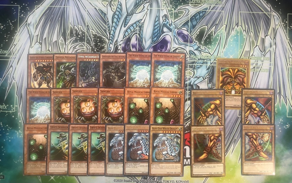 Hello! You are purchasing the deck list below, the cards will be English, real, and near mint to light play condition at worst. All decks are built with the lowest rarities for cards in mind to keep the price of the deck low and affordable for all duelists! Some cards may be in speed duel printing if this is the cheapest available copy of the card, but do not worry these are real cards and legal for tournament use! Purchase with confidence and safety! As an added bonus one pack of card sleeves will be included with your deck! Thanks again and good luck dueling! Now here's the decklist; Monsters: 1| Exodius The Ultimate Forbidden Lord 1| Emissary of the Afterlife 1| Exodia, The Legendary Defender 1| Exodia Necross 1| Right Leg of the Forbidden One 1| Right Arm of the Forbidden One 1| Left Leg of the Forbidden One 1| Right Arm of the Forbidden One 1| Exodia The Forbidden One 3| Blue-Eyes White Dragon 3| Royal Magical Library 3| Swift Scarecrow 3| Sangan 3| The White Stone of Legend Spells; 1| Contract With Exodia 3| Cards of Consonance 3| Trade-In 3| Swords of Revealing Light 3| Dark Factory of Mass Production Traps: 1| Obliterate!!! 3| Reckless Greed 3| Jar of Greed (Portuguese copies)